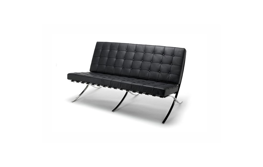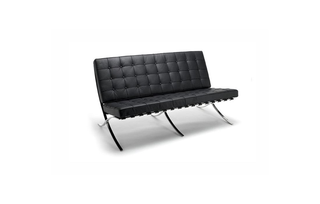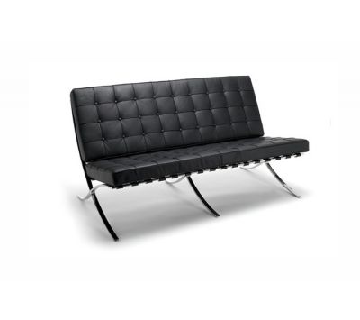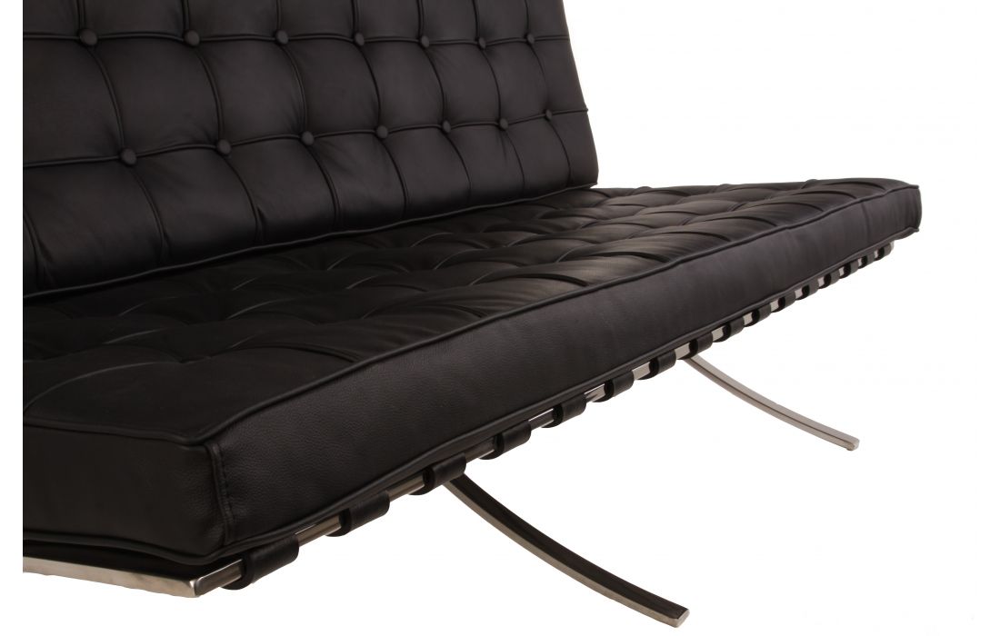 Sofá de dois lugares com estrutura de aço inox polido com estofo em pele genuína.