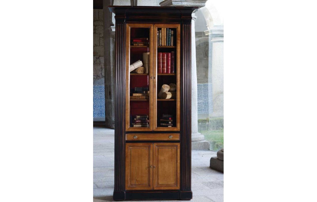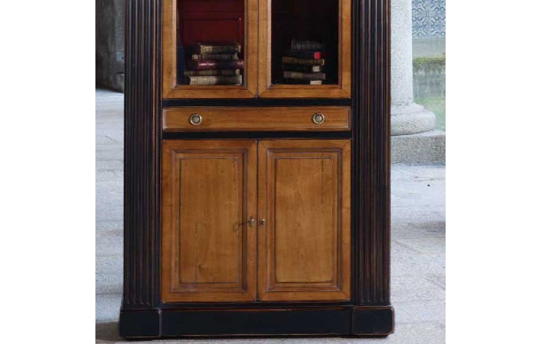 Livreiro com 2 portas de vidro e 2 portas de madeira, com design provençal, possibilidade de vários acabamentos.