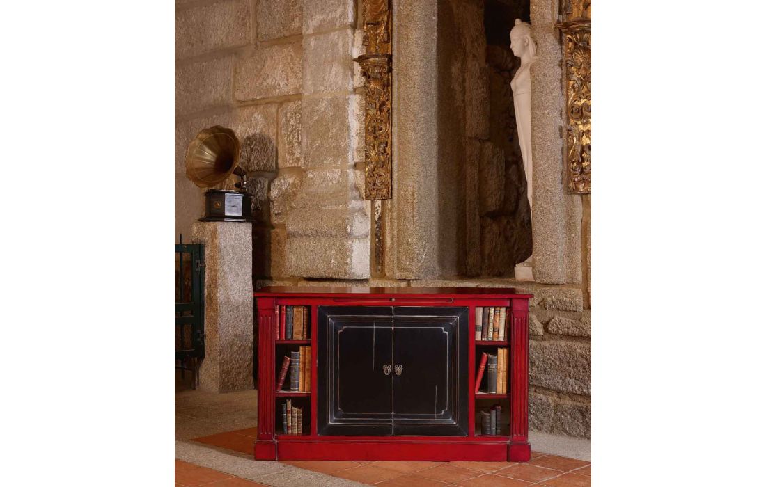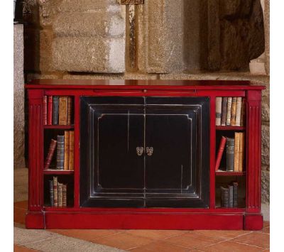 Livreiro com 2 portas de madeira, design provençal, com possibilidade de vários acabamentos.