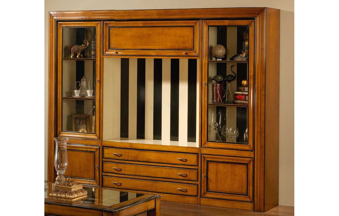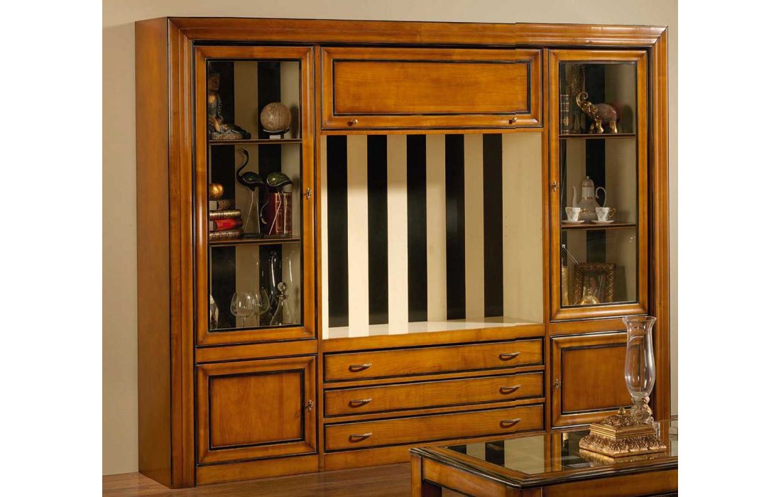 Livreiro com 5 portas e 3 gavetas de abrir para cima, design provençal com possibilidade de vários acabamentos.