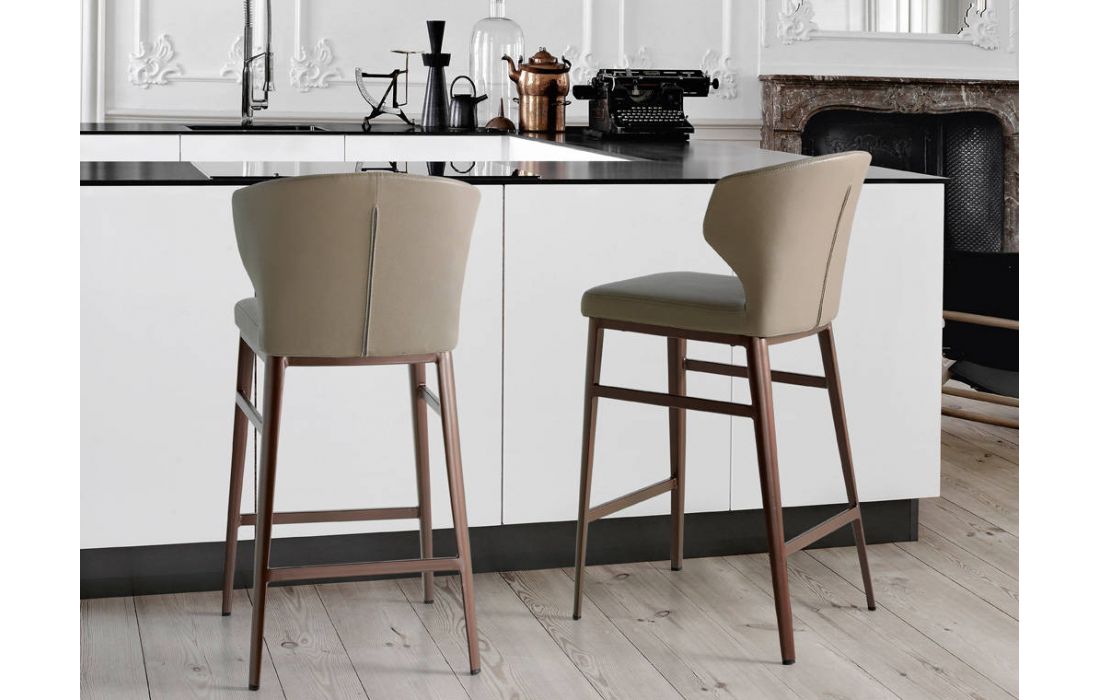 Banco bar estofado com pés em metal.