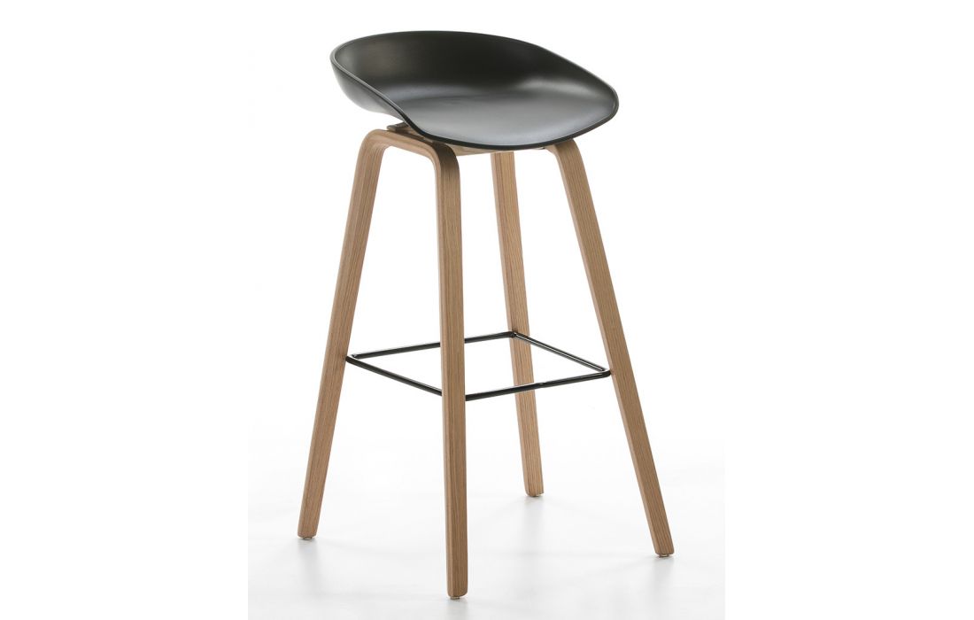 Prazo de entrega: 30/45 diasBanco bar com pés em metal com costa em nogueira ou carvalho cinza com assento e encosto revestido em pele sintética ou pele genuína