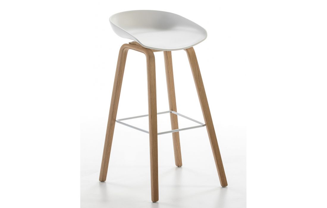 Prazo de entrega: 30/45 diasBanco bar com pés em metal com costa em nogueira ou carvalho cinza com assento e encosto revestido em pele sintética ou pele genuína