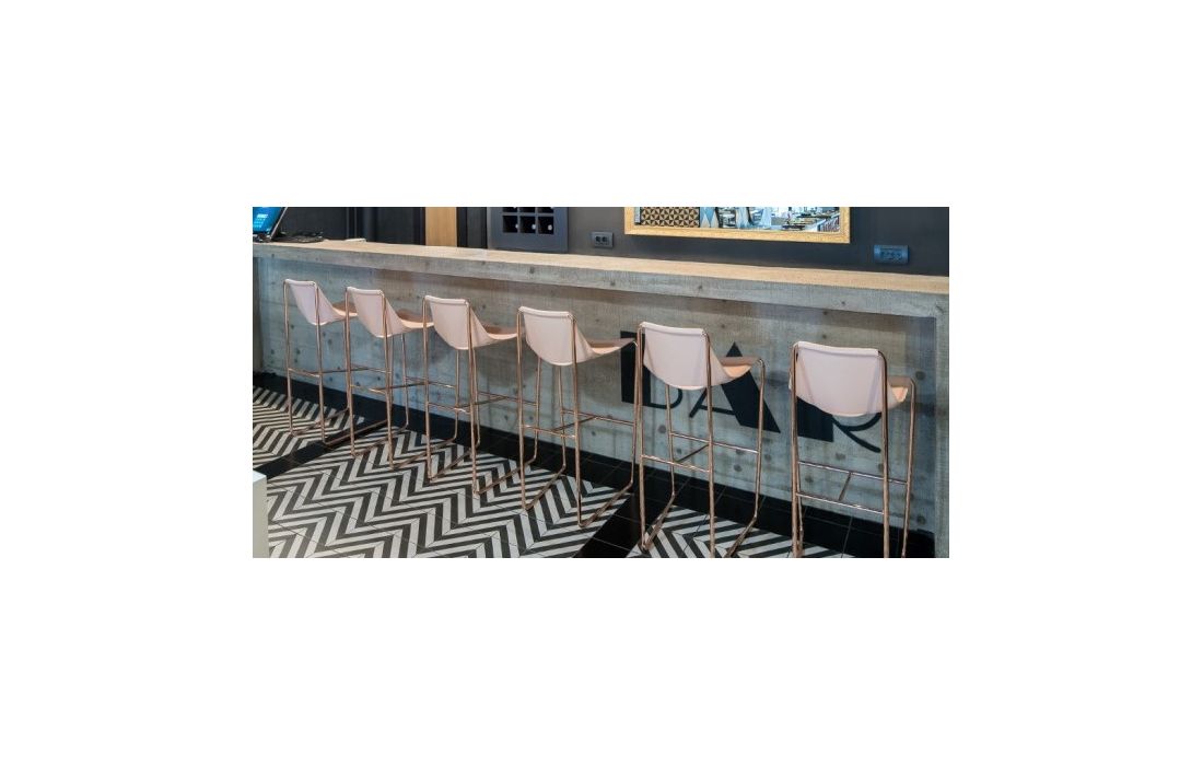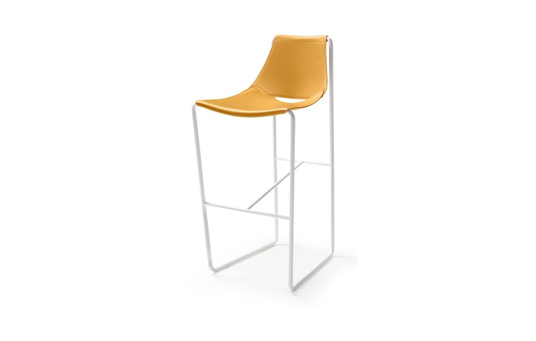 Prazo de entrega: 30/45 diasBanco bar com estrutura em metal revestido em couro regenerado, pele sintética ou pele genuína com pormenor de apoio para os pés em metal