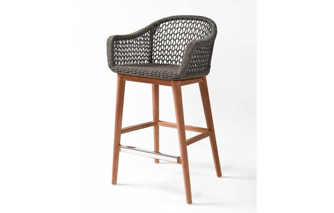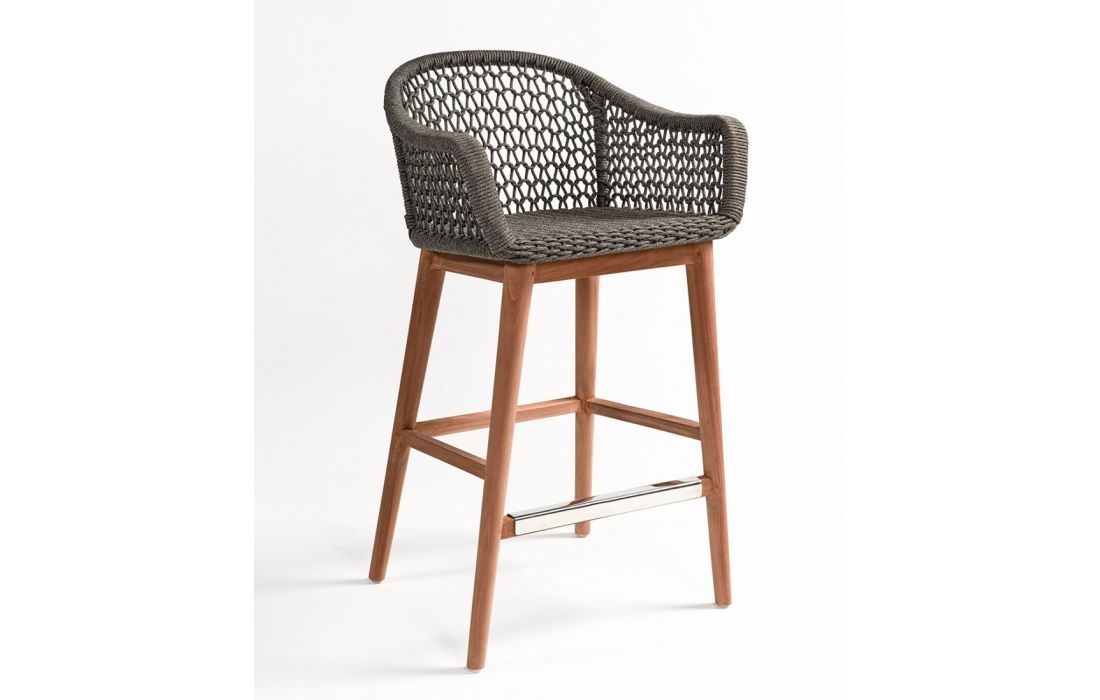 Banco bar em madeira de teca e corda.Prazo de Entrega