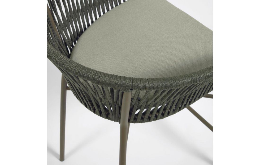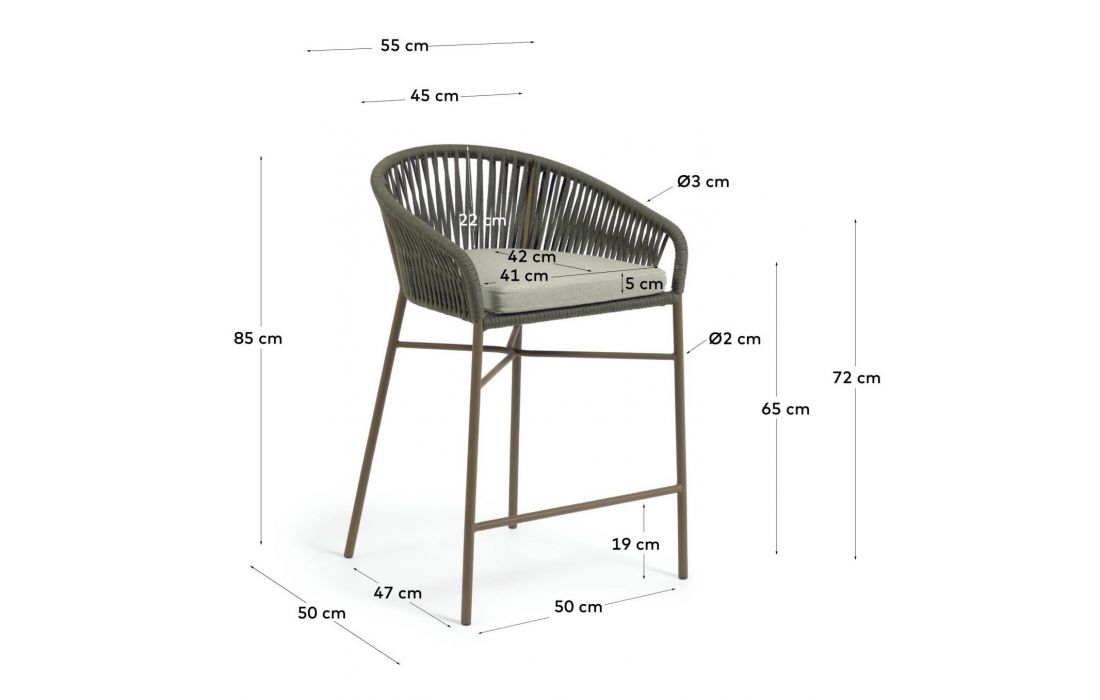 Banco bar em aço galvanizado e corda cor verde com assento em tecido