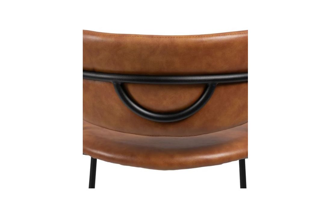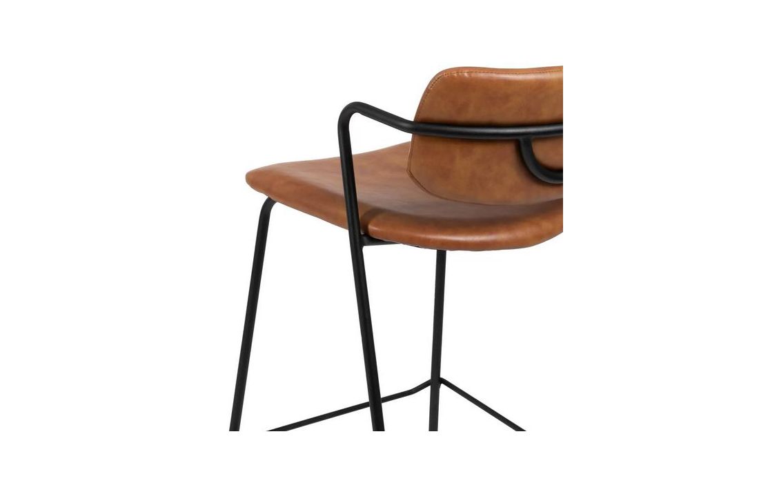 Banco bar com estrutura de metal, estofada em pele sintetica cor castanho claro