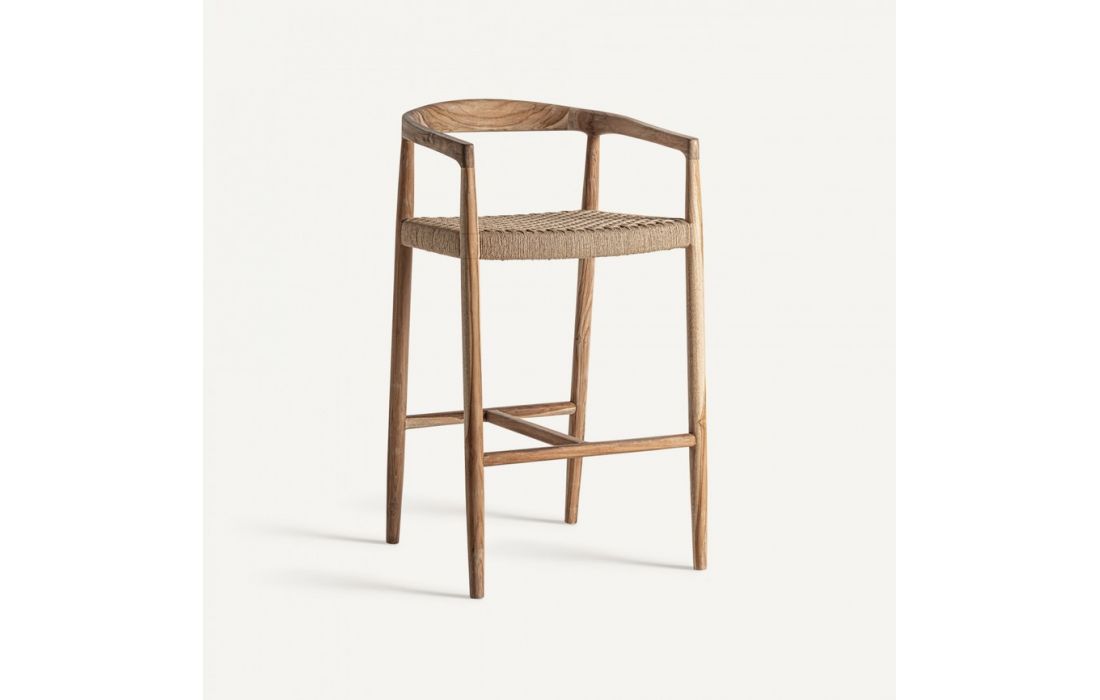 Banco de bar em madeira de teca na cor castanha com fibra natural castanha claraDestinatário :