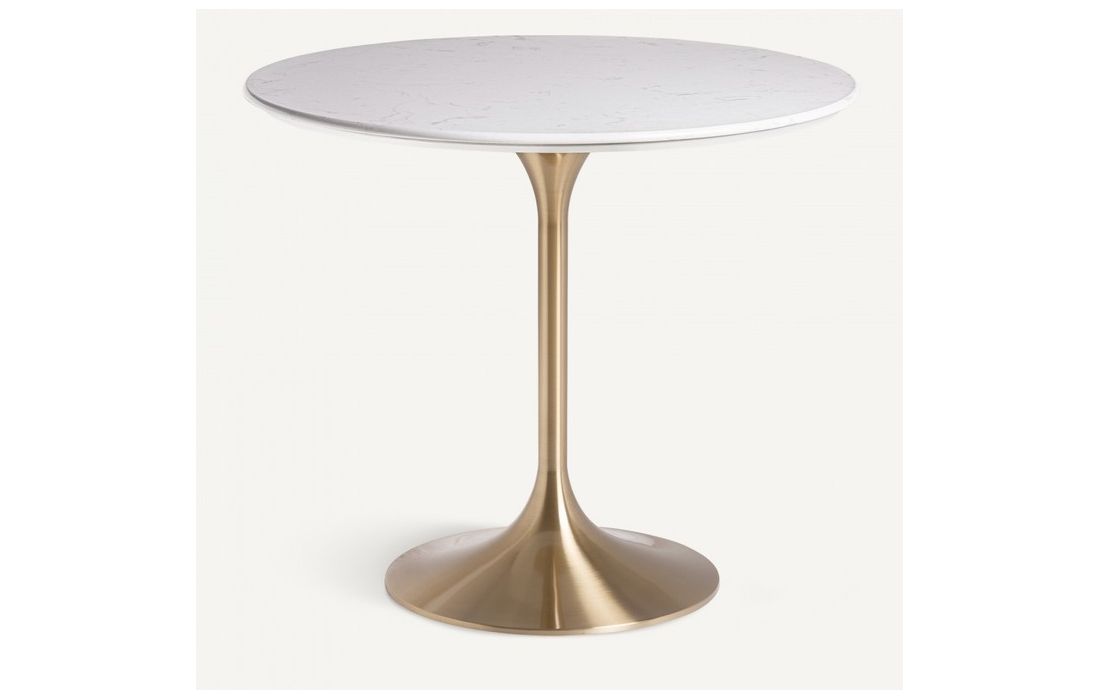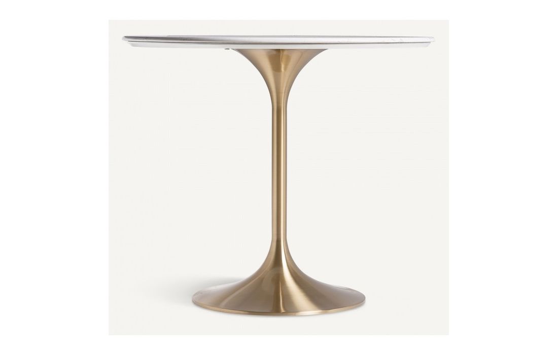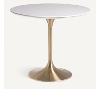 Mesa de bar redonda feita em porcelanato combinado com aço douradoDestinatário :