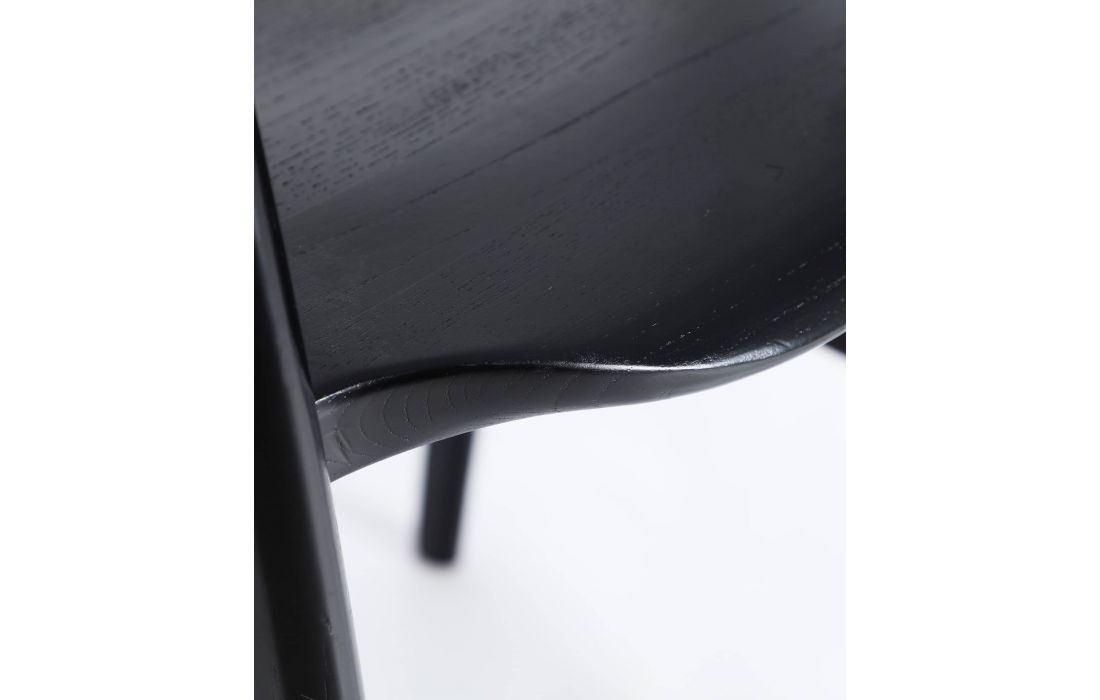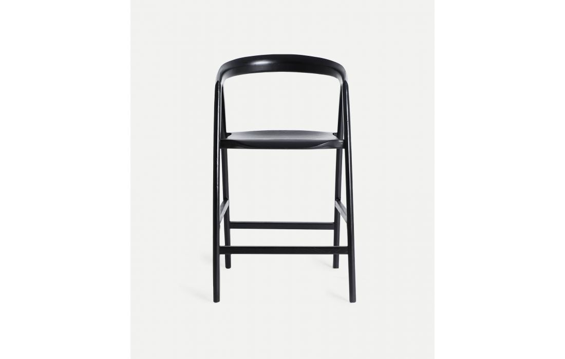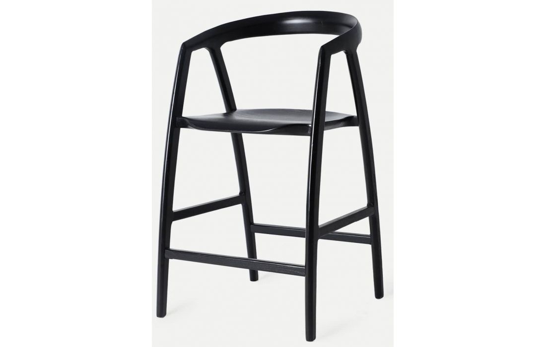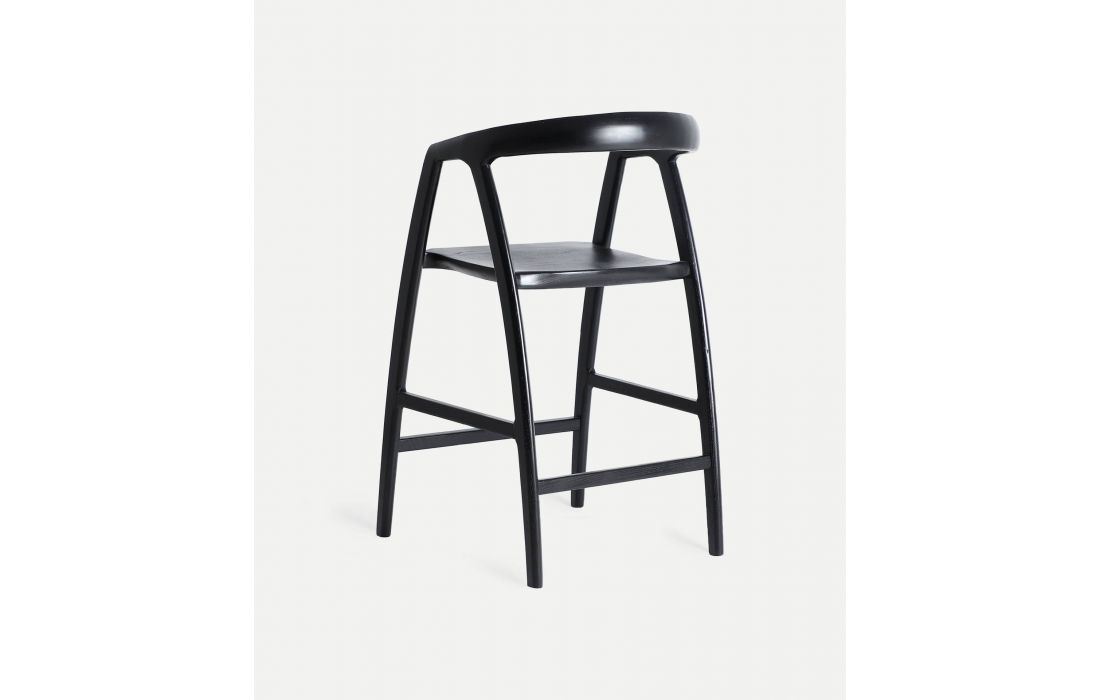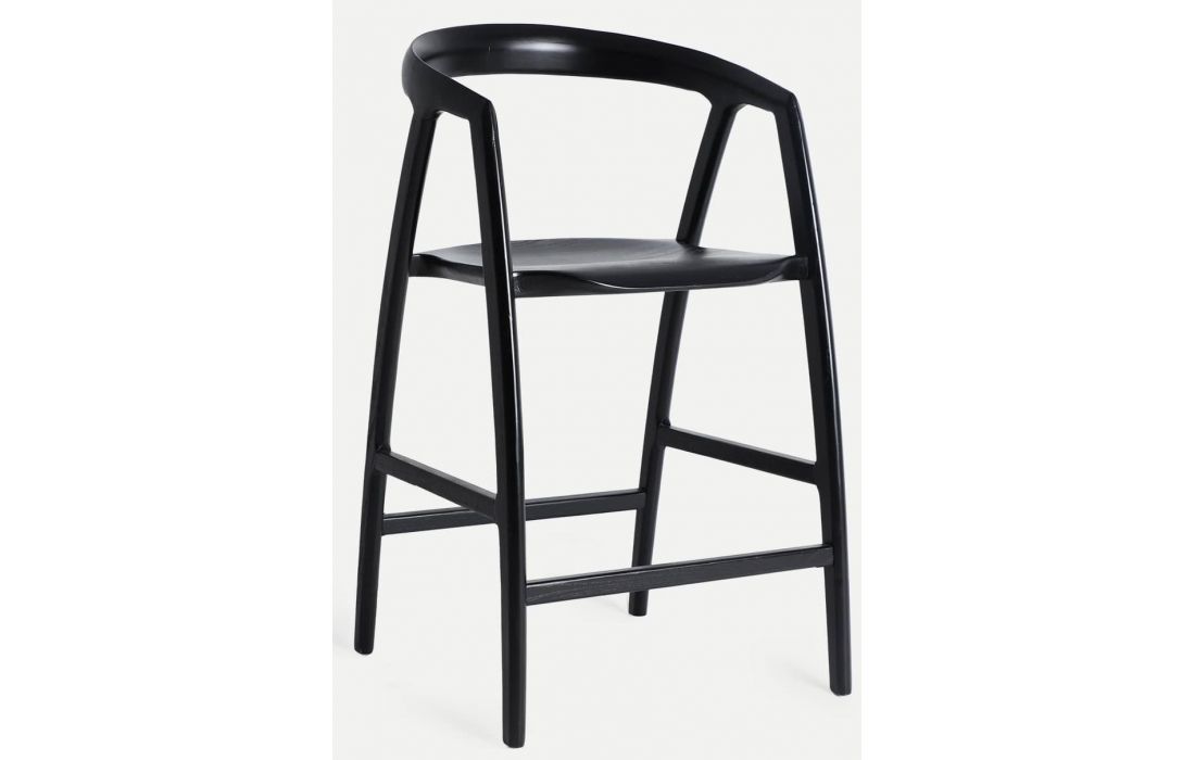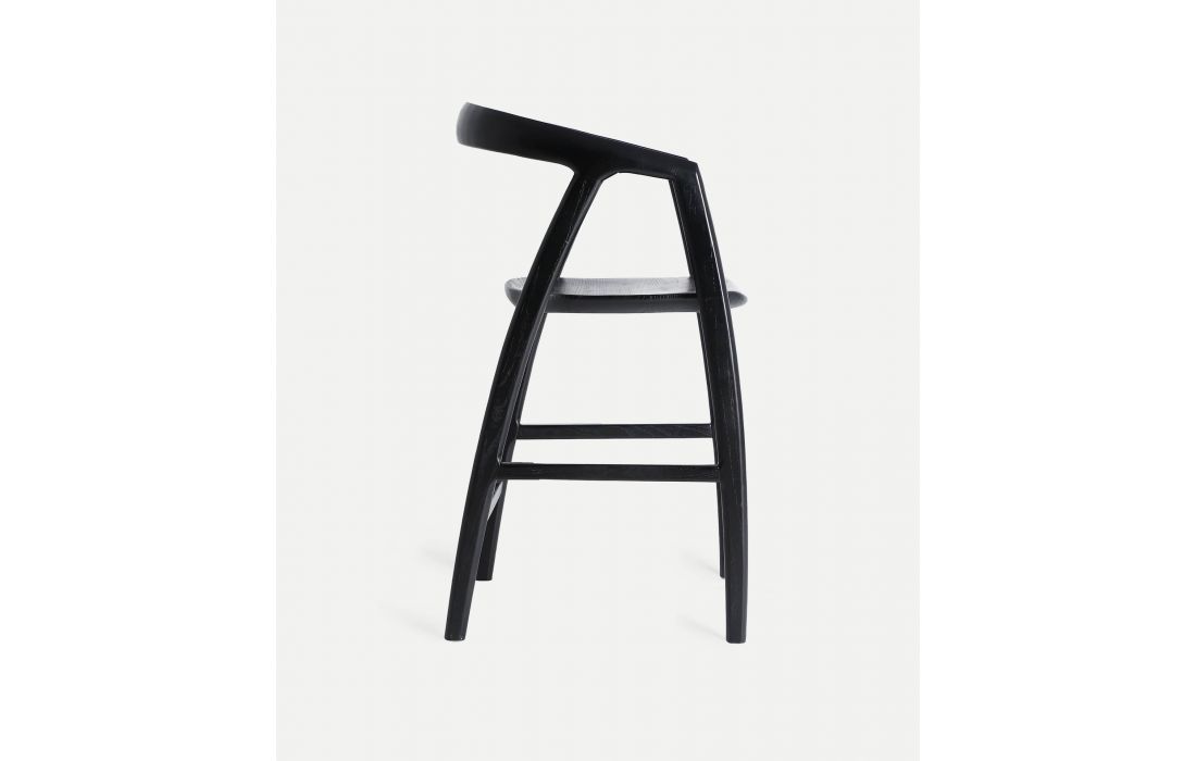 Banco de estilo contemporâneo, em madeira de olmo preto. Uma peça robusta e estética, ideal para bares e espaços de hospitalidade com um toque moderno.