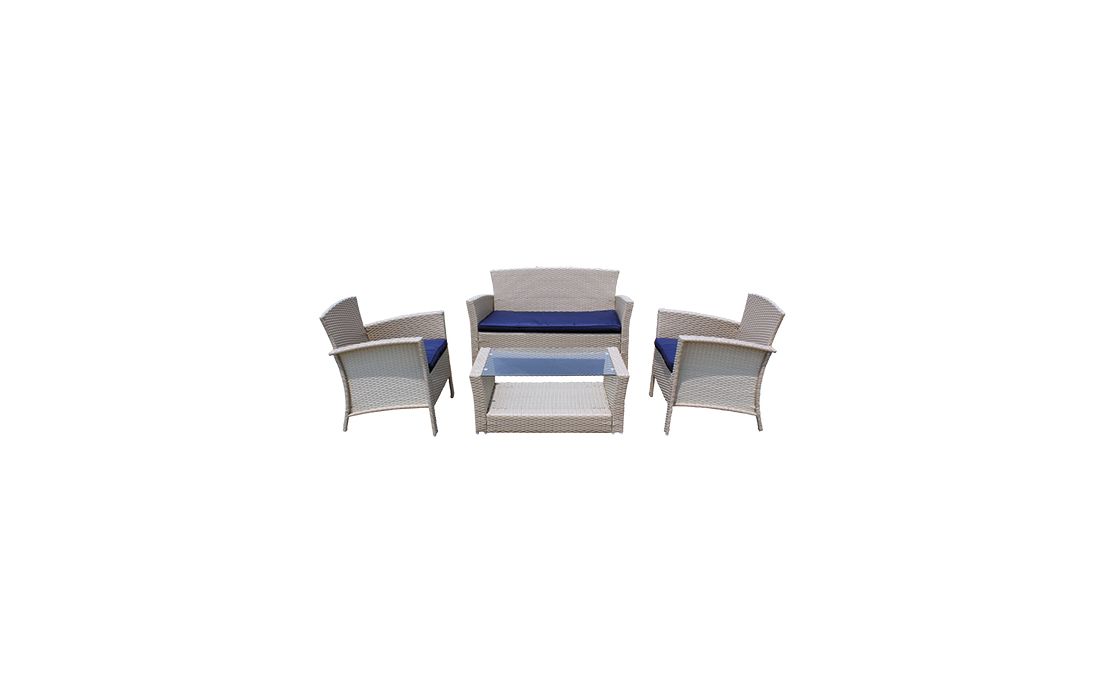 Conjunto em vime sintético, composto por 4 peças: 1 sofá de 2 lugares 2 poltronas 1 mesa de centro Dimensões em cm L 125 P 69 A 78 (sofá 2 lugares) L 67 P 69 A 78 (poltrona) L 93 P 50 A 38,5 (mesa de centro)