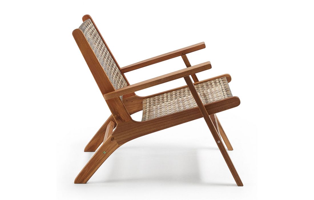 Poltrona com estrutura feita de madeira de acácia sólida, assento e o encosto de vime trançados à mão.