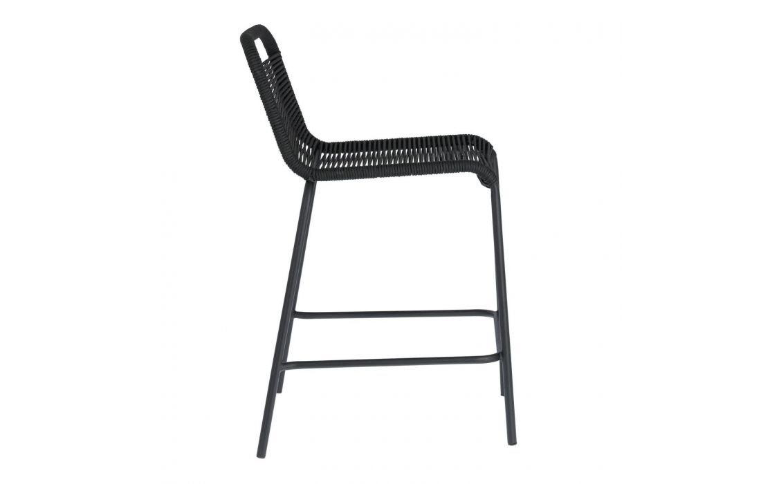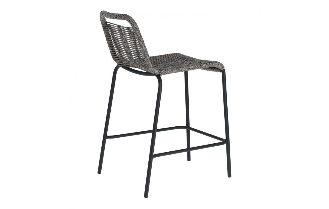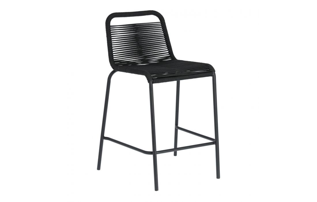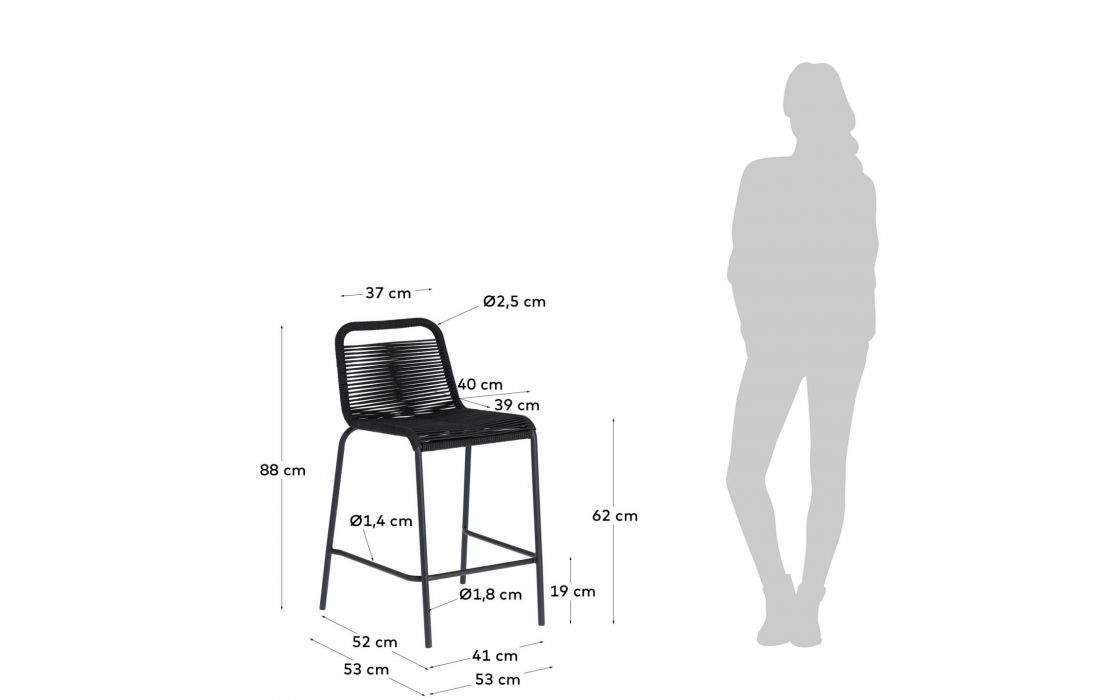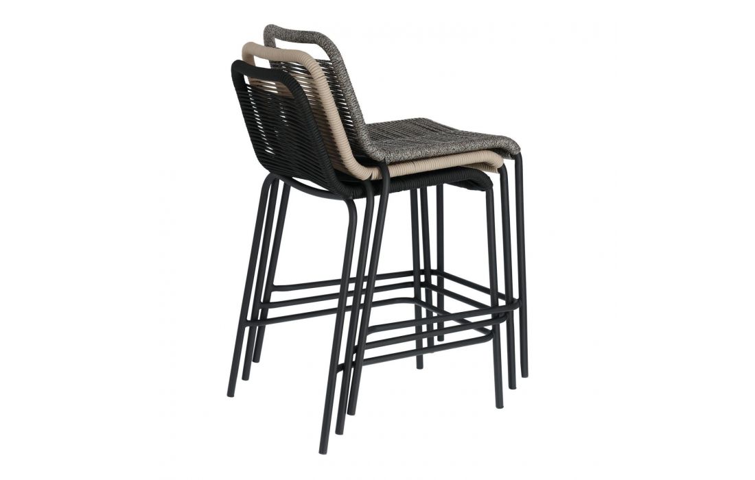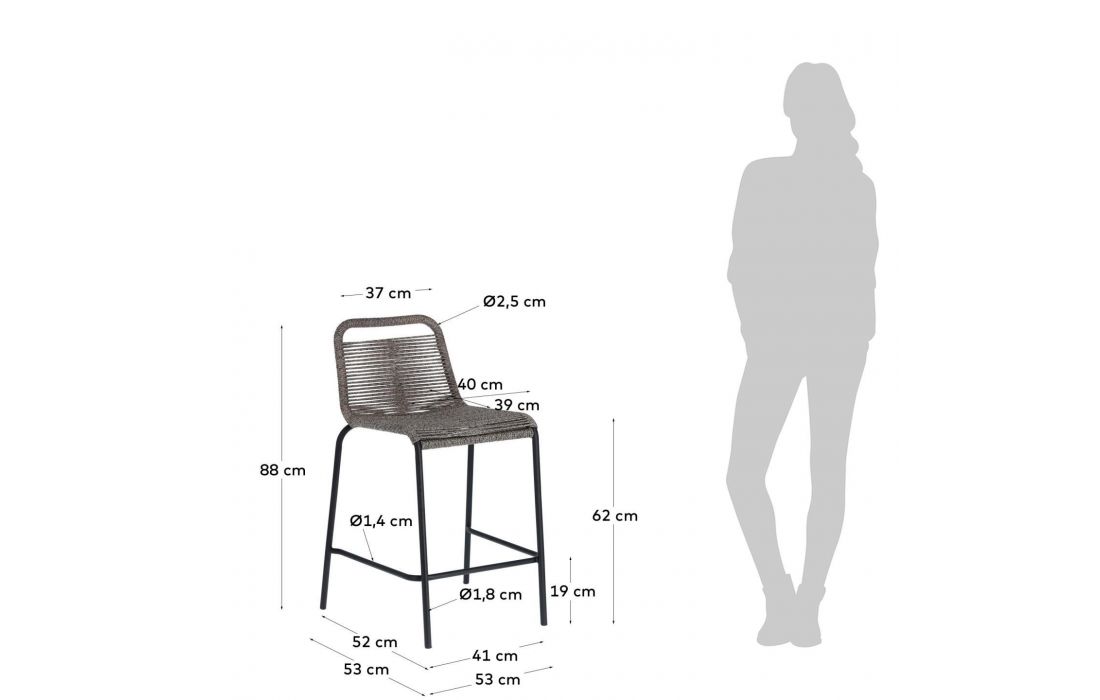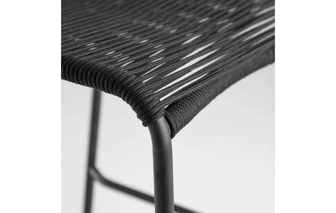 Banco de bar feito de aço galvanizado resistente à ferrugem e corrosão, assento é trançado à mão com corda de poliéster resistente a UV. Bancos empilháveis.