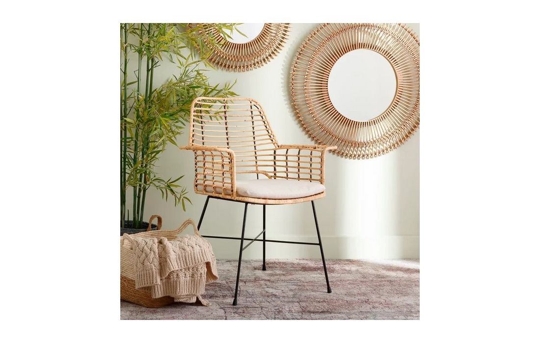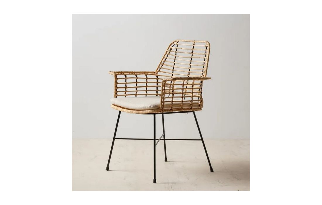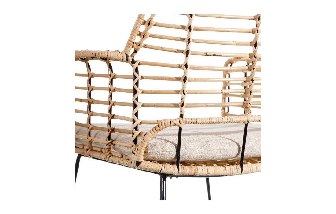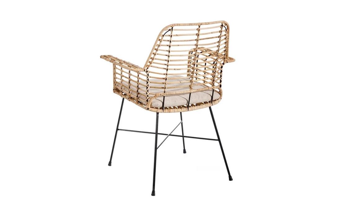 Cadeira em fibra natural na cor natural e preto, com pés em metal preto. Almofada 100% poliéster removível.Destinatário :