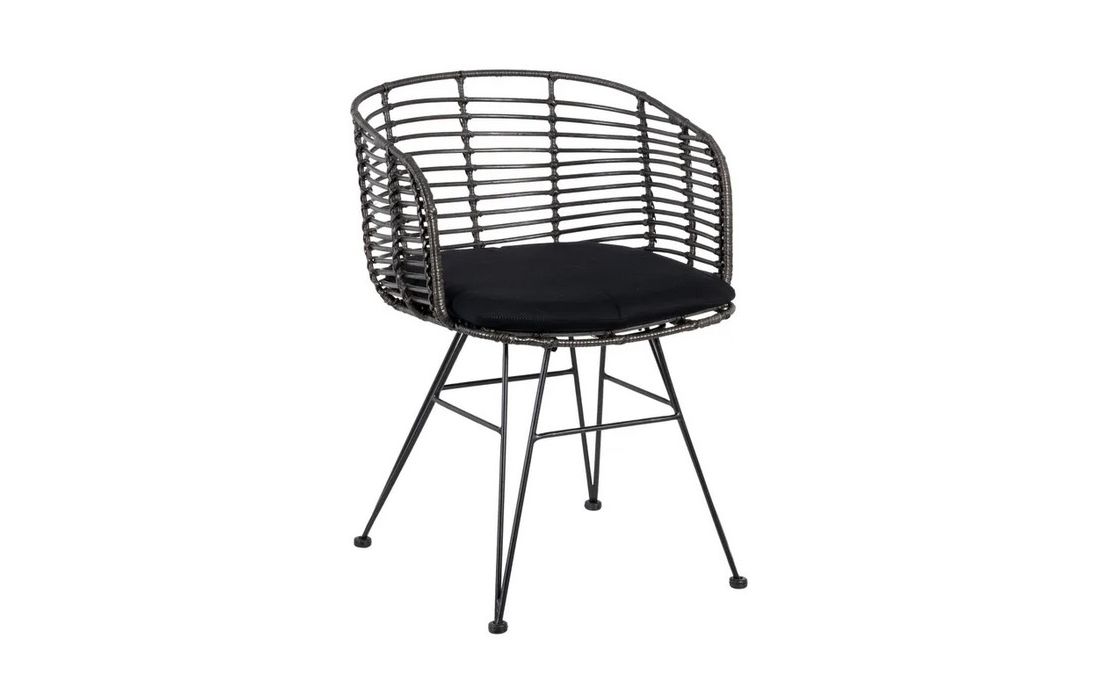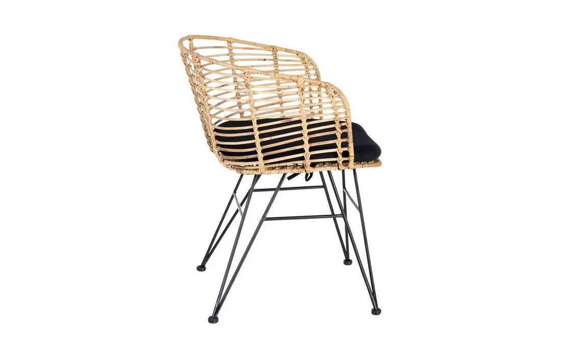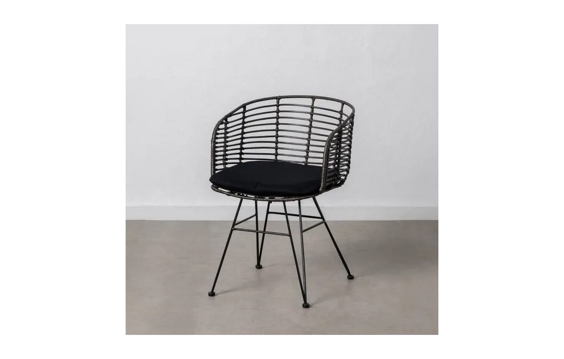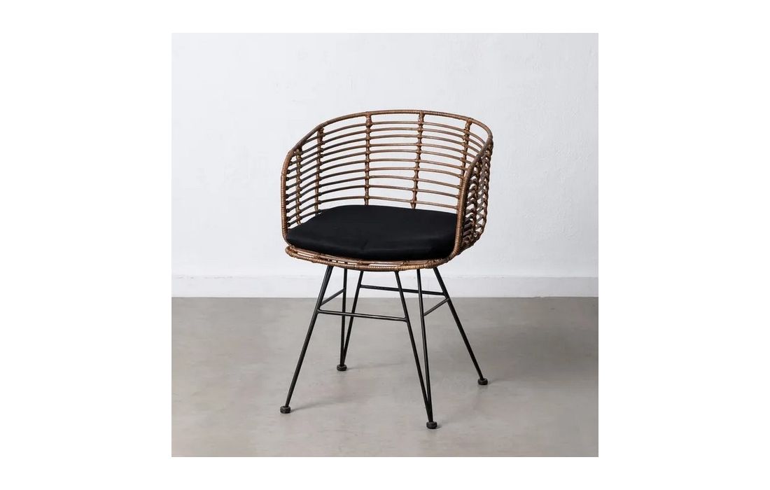 Cadeira em ratan com pés em metal preto. Almofada 100% poliéster removível. Ddisponível na cor natural, castanho e preto.Destinatário :