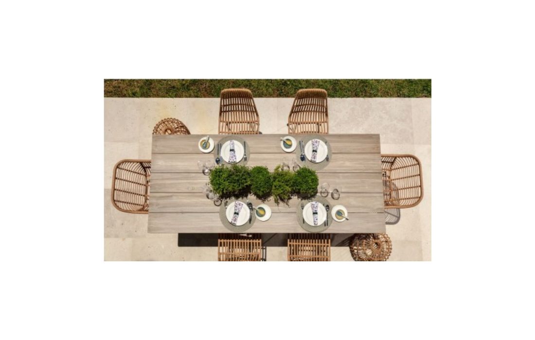 Mesa retangular em rattan com tampo em vidro, para uso exterior.Dimensões em cm C 90 P 90 A 77C 150 P 90 A 77C 200 P 100 A 77Prazo de Entrega20 a 30 dias