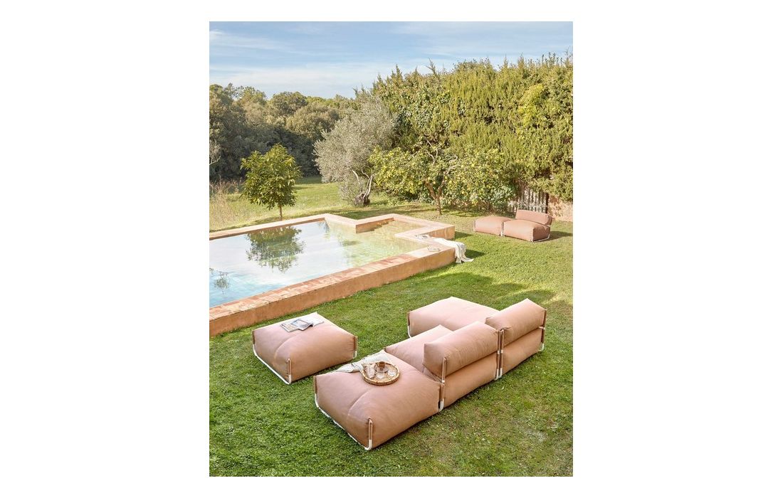 Puff modular composto por uma estrutura em aluminio.