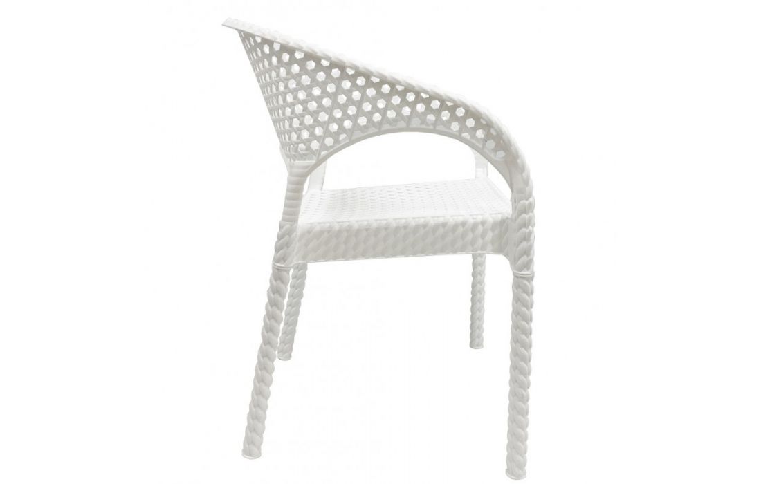 Cadeirão empilhável com estrutura em polipropileno disponível em 3 cores.