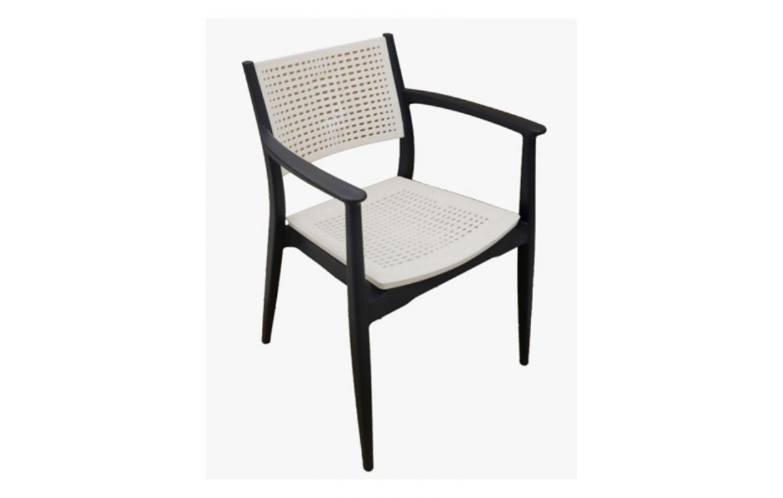 Cadeirão empilhável com estrutura em polipropileno disponível em 2 cores.