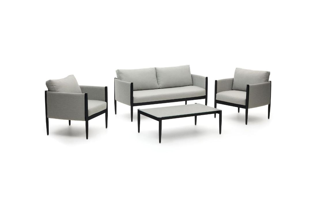 Conjunto exterior, sofá 2 lugares, 2 poltronas e tafa de café, 2 poltronas e mesa de centro