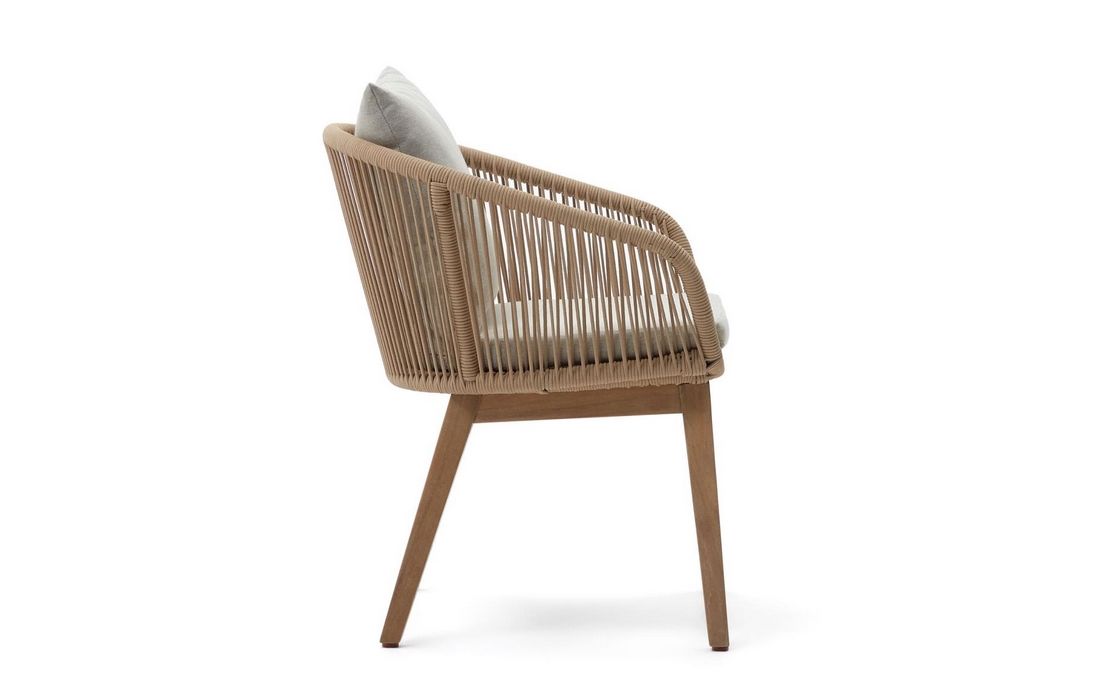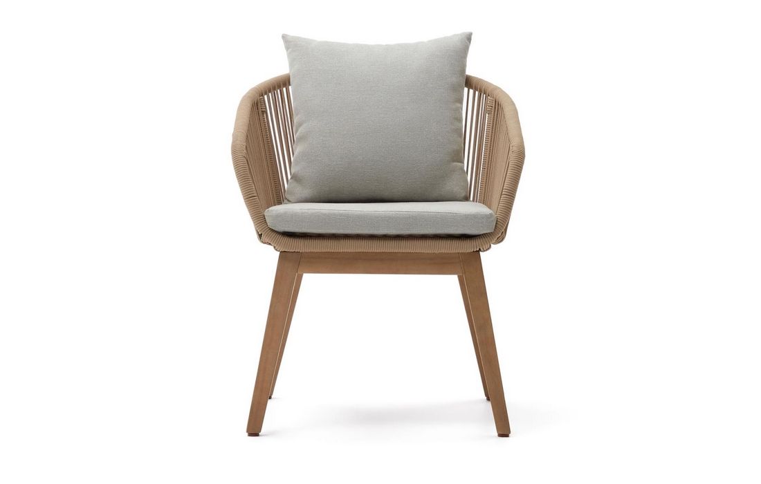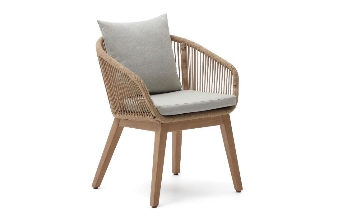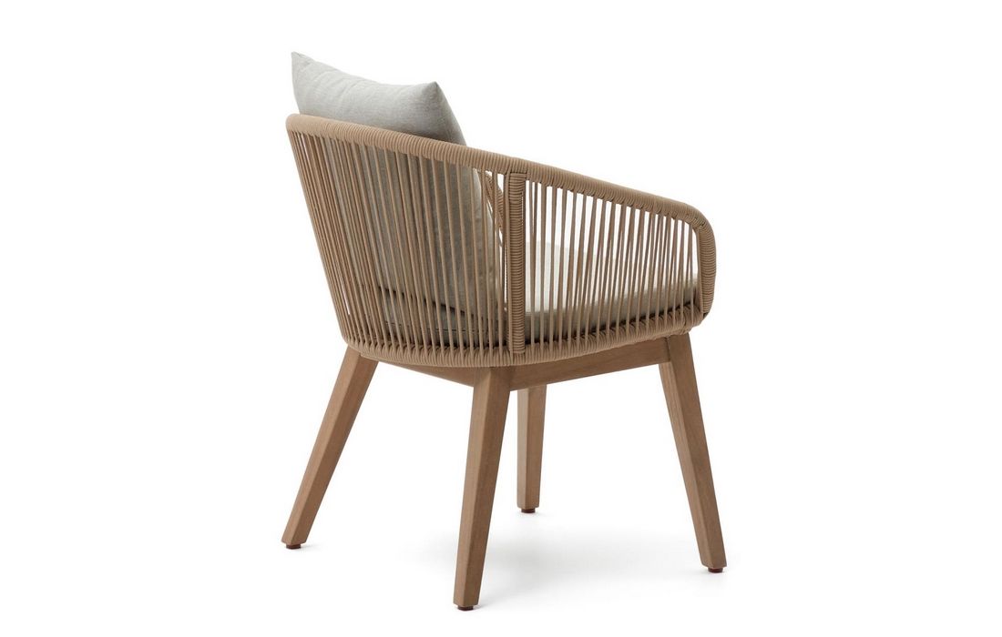 Cadeira em madeira de acacia com acabamento em corda trançada à mão resistente aos raios UV.Destinatário :