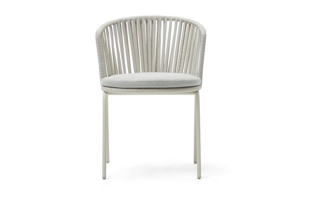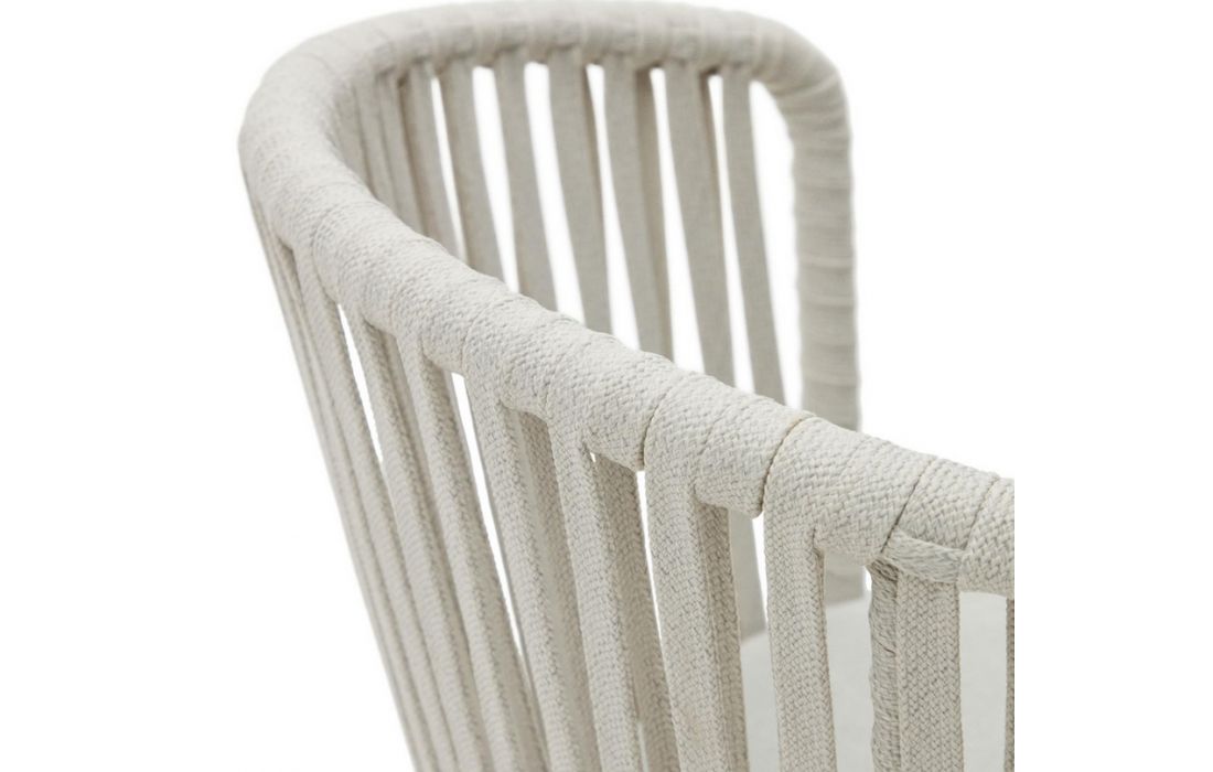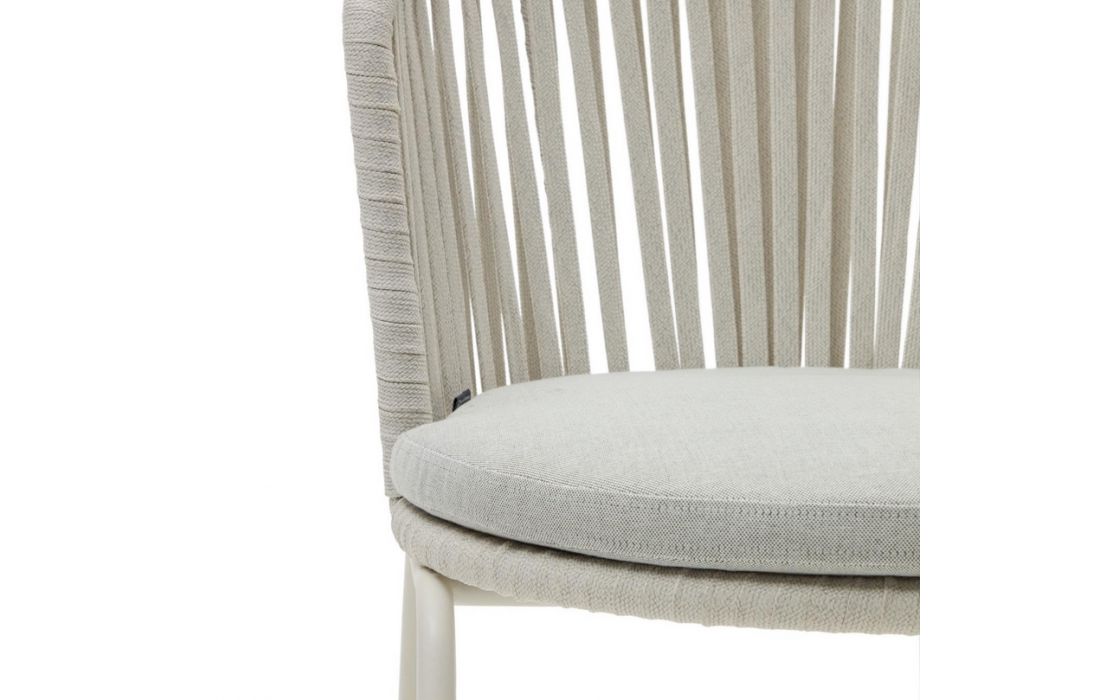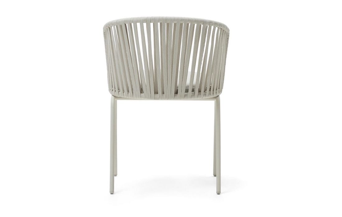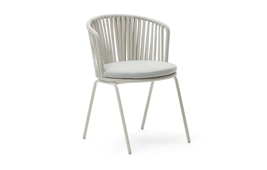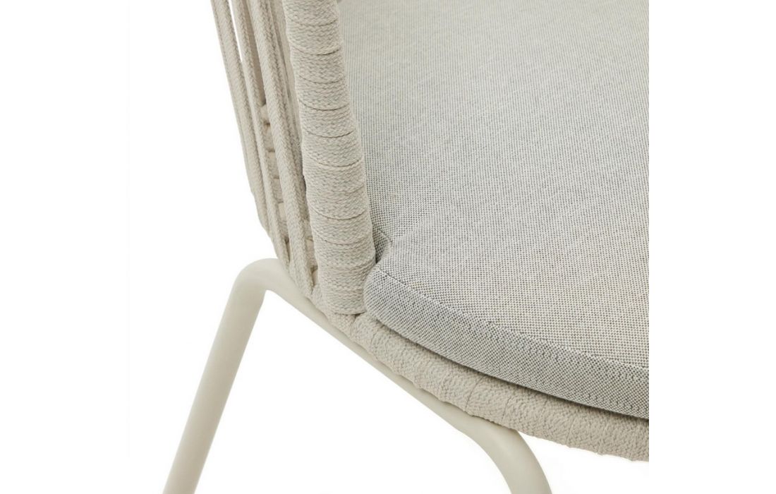 Cadeira em aço galvanizado , com o encosto em corda e assento estofado em bege.Destinatário :