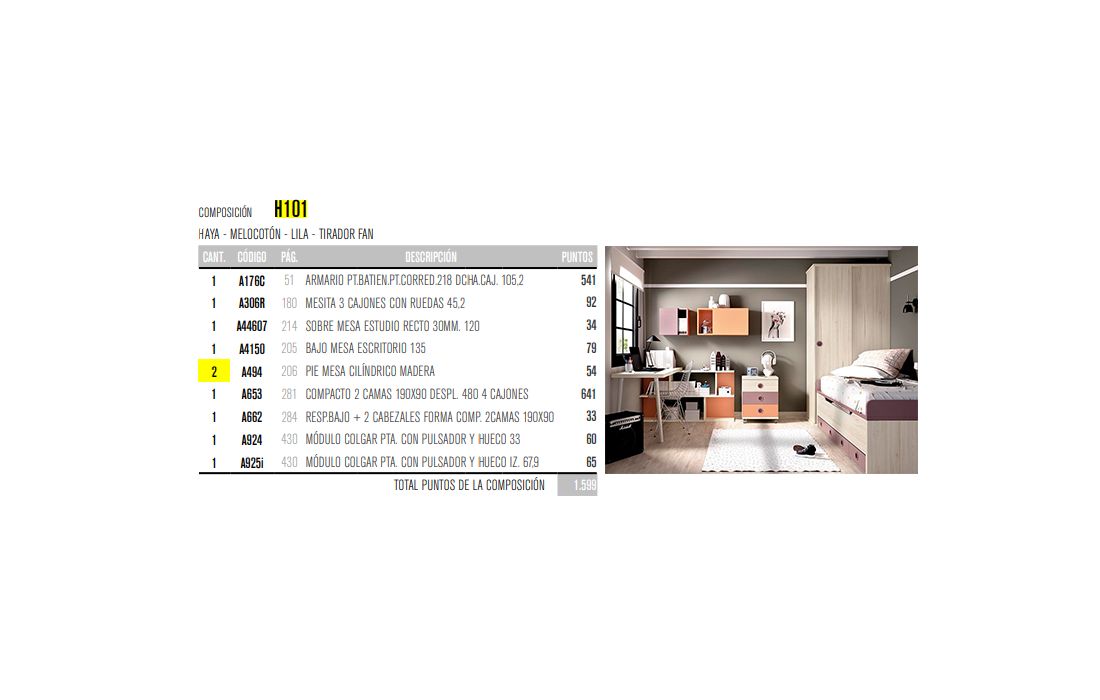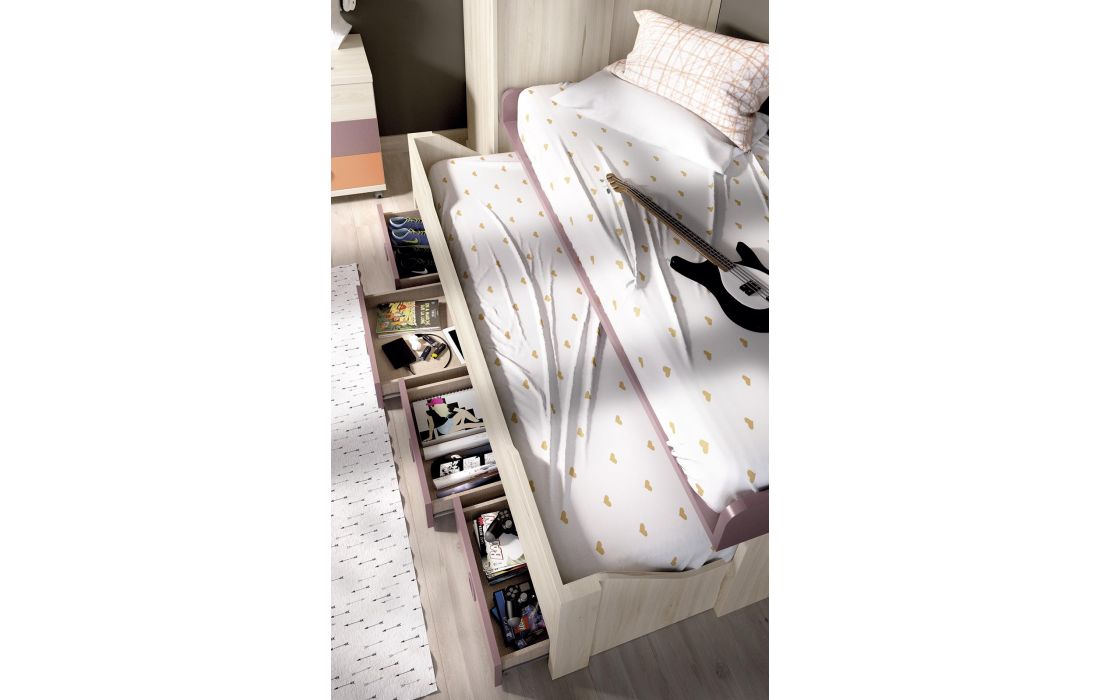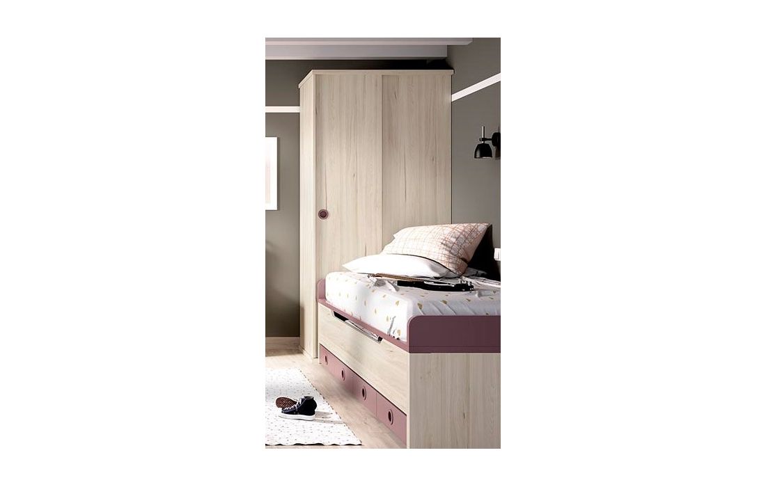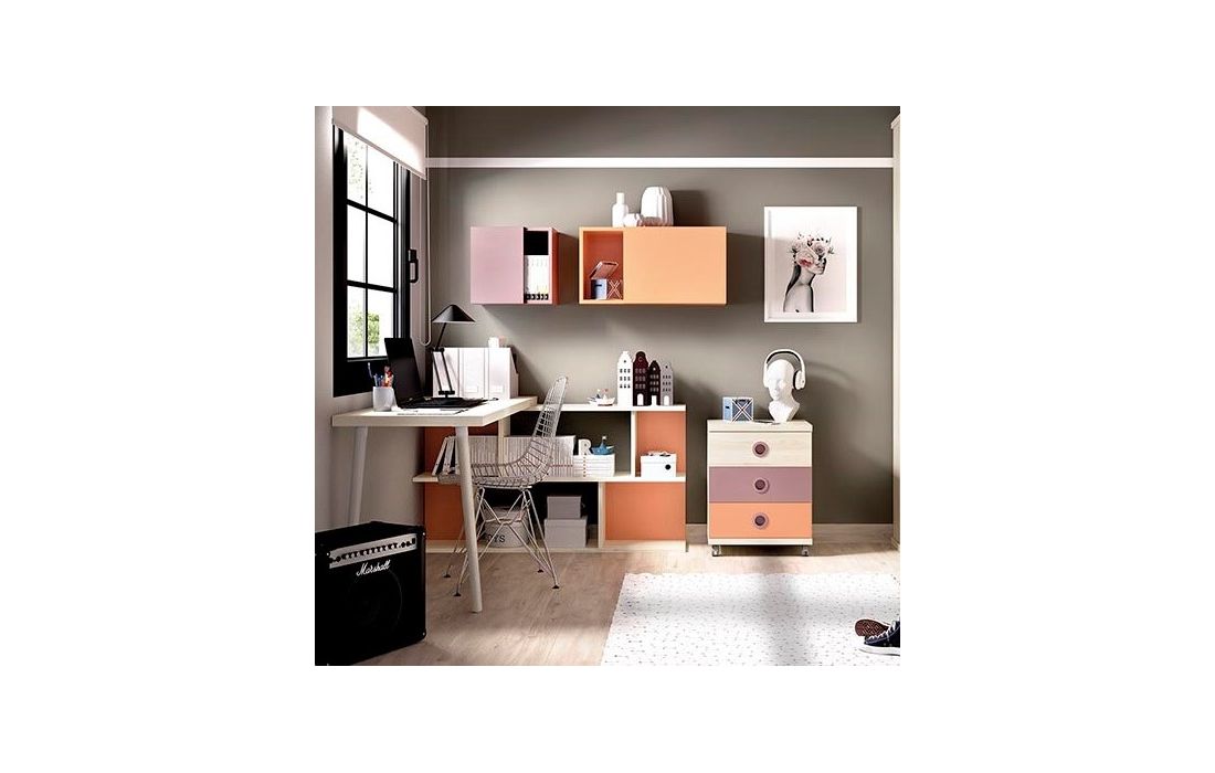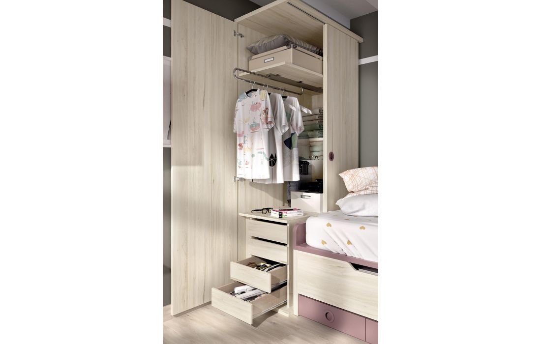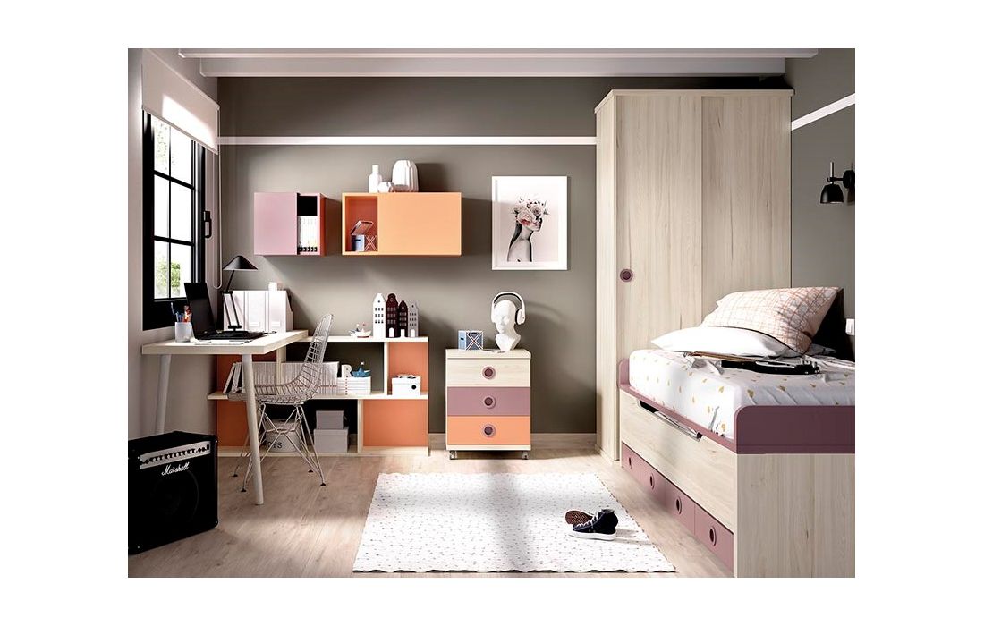 Roupeiro, Mesa de cabeceira com rodas, Secretária, Estante, Compacto de 2 camas com 4 gavetas, Módulos de parede