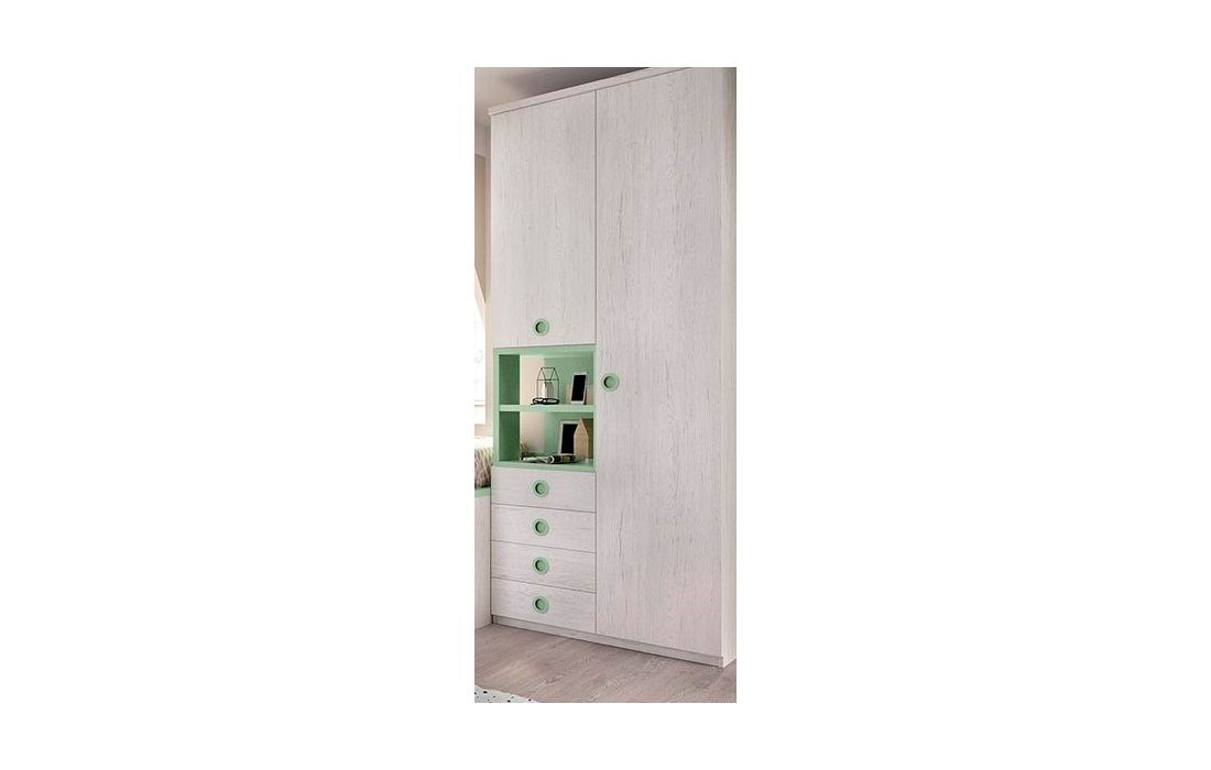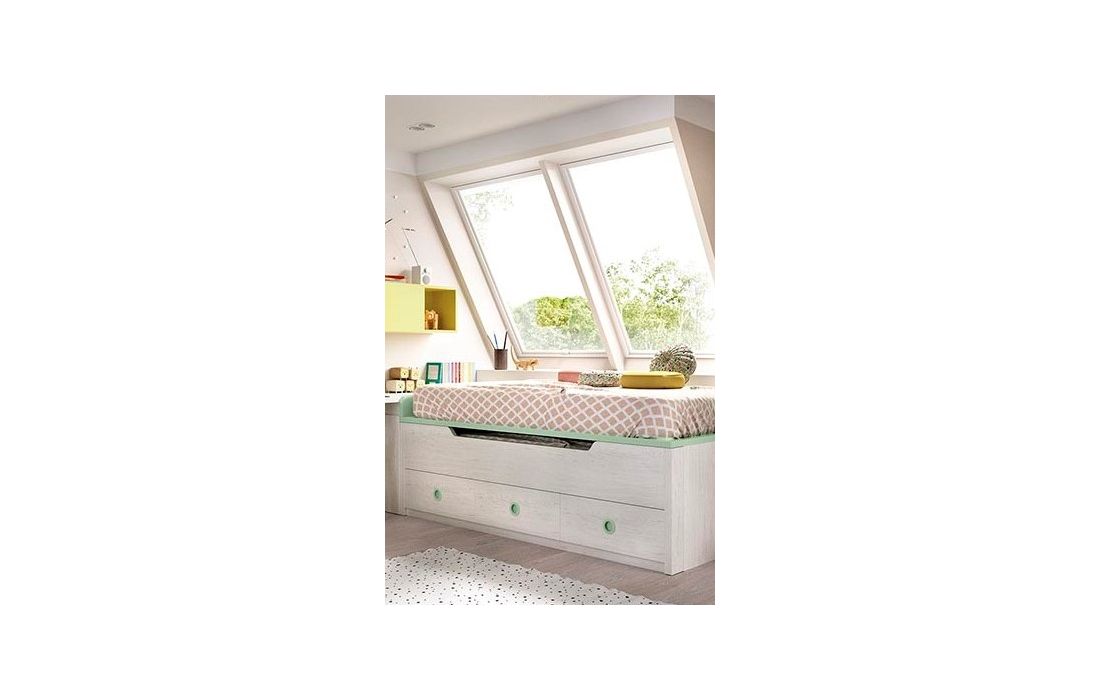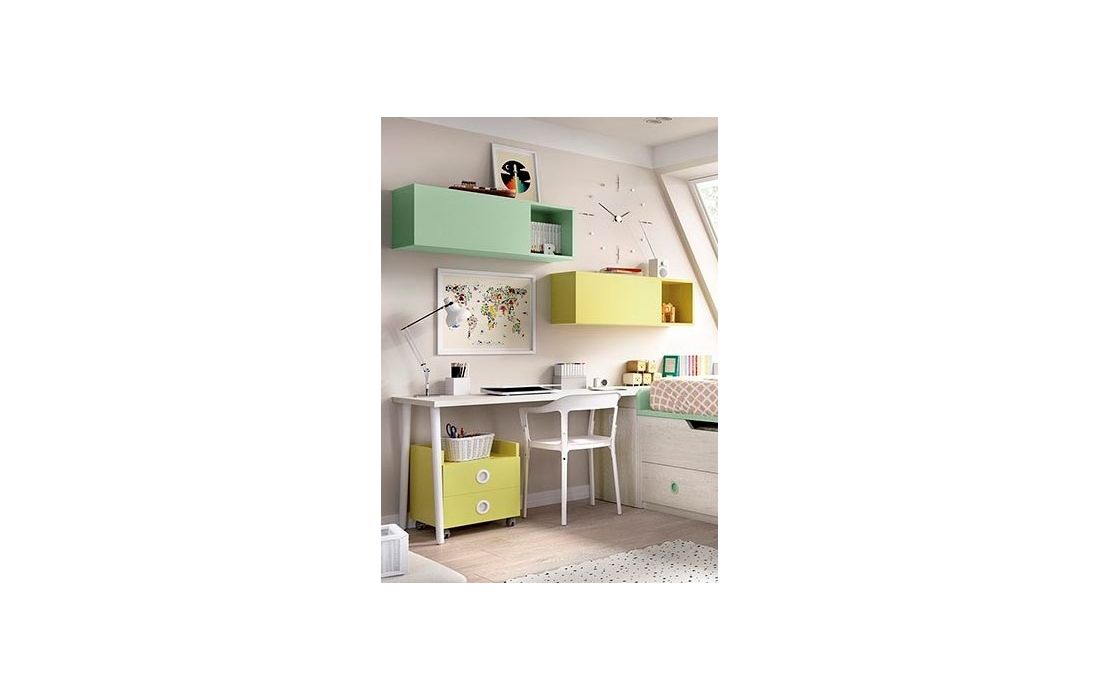 Roupeiro, Mesa de cabeceira com rodas, Secratária, Compacto de 2 camas com 3 gavetas, Módulos de parede