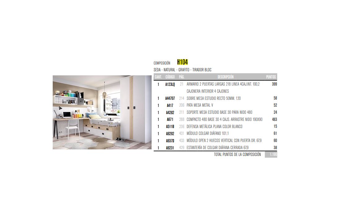 Roupeiro, Secratária, Compacto de 2 camas (c/ nido) com 4 gavetas, Módulos de parede