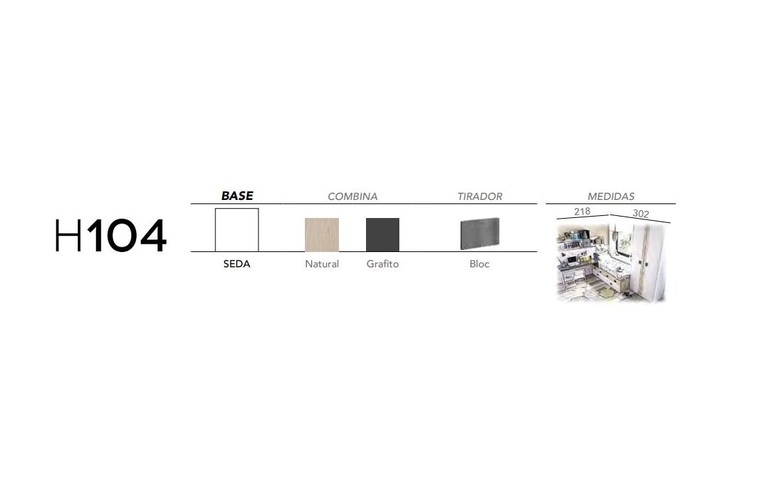 Acabamento igual à imagem: Seda, Natural, Grafito e puxador Bloc