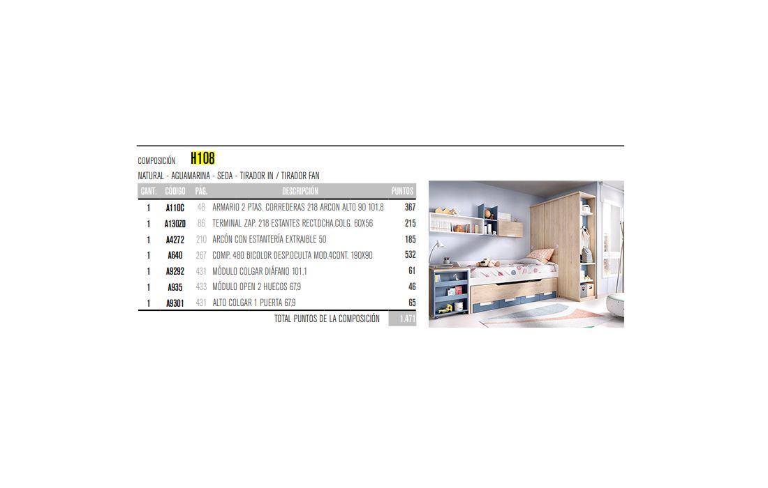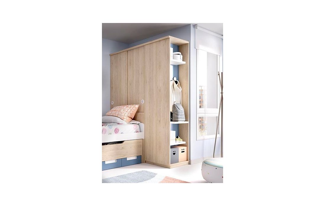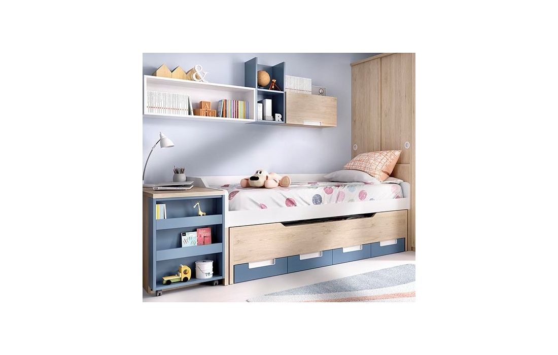 Roupeiro, Estante / Secratária, Compacto de 2 camas (c/ cama-gavetão) e 4 gavetas, Módulos de parede