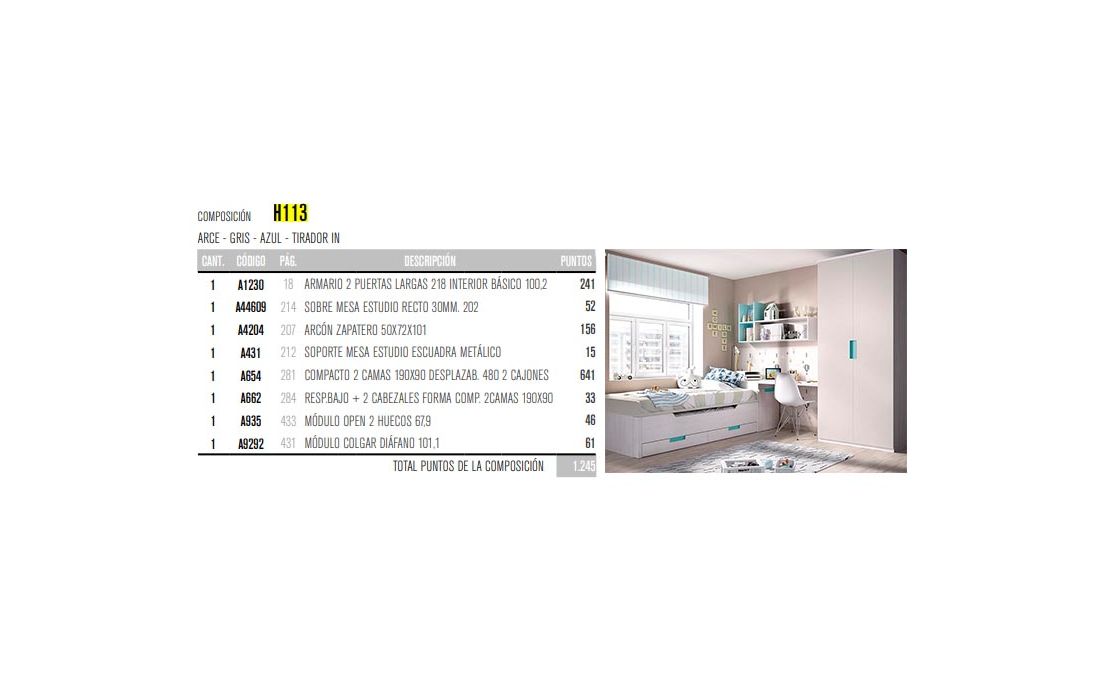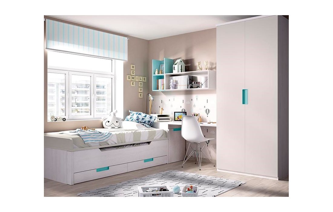 Roupeiro, Secratária, Compacto de 2 camas com 2 gavetas, Módulos de parede