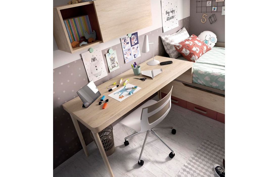 Roupeiro com estante, Secratária, Compacto de 2 camas (c/ cama-gavetão) e 4 gavetas, Módulos de parede