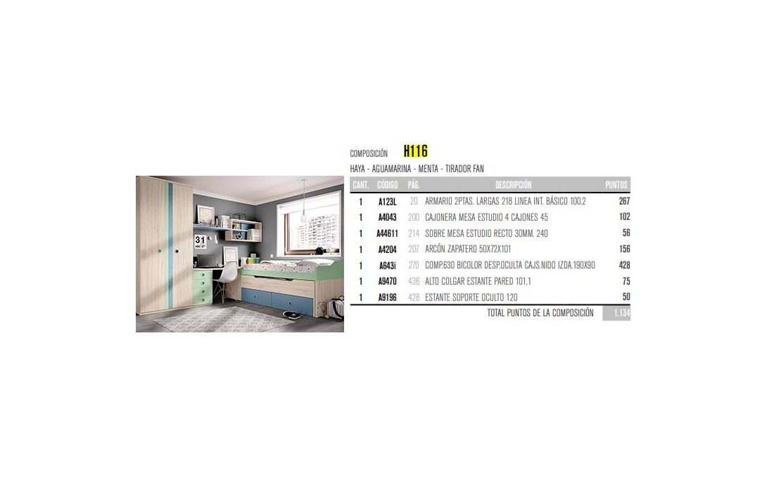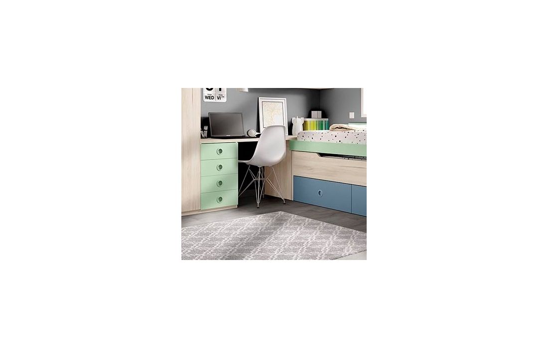 Roupeiro, Secratária, Compacto de 2 camas (c/ cama-gavetão) e 2 gavetas, Módulos de parede