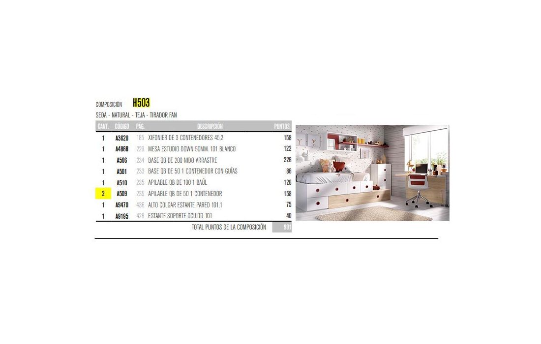 Secratária, Compacto de 2 camas (c/ nido) 4 gavetas, Camiseiro, Módulos de parede