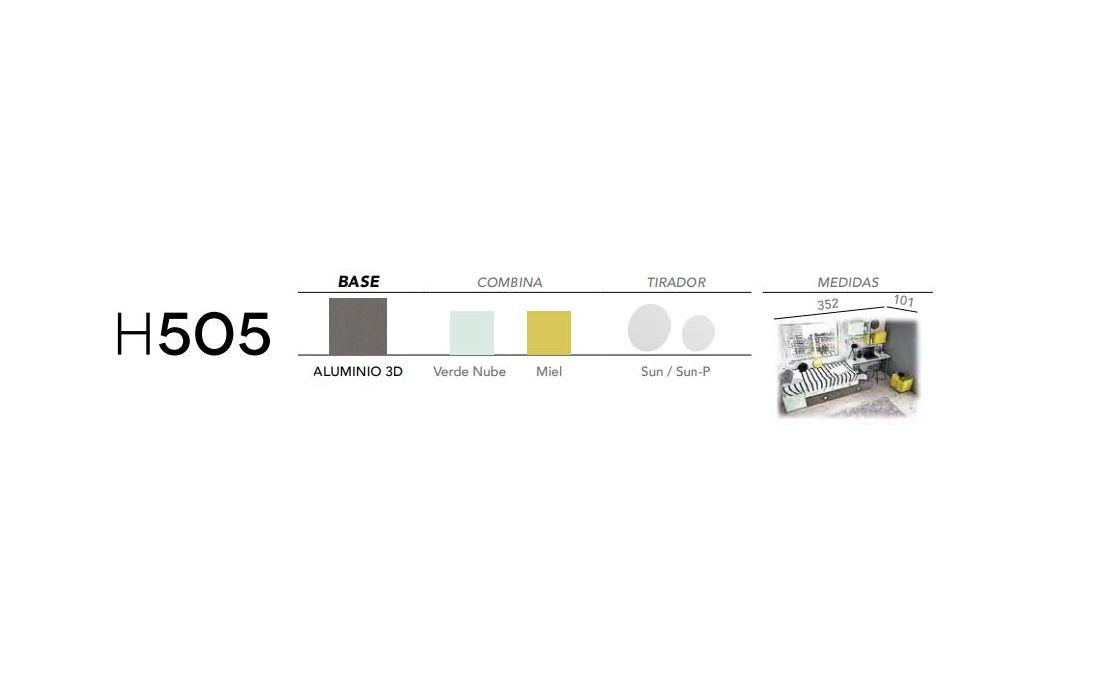 Acabamento igual à imagem: Alumonio 3D, Verde Nube, Miel e puxador Sun / Sun-P
