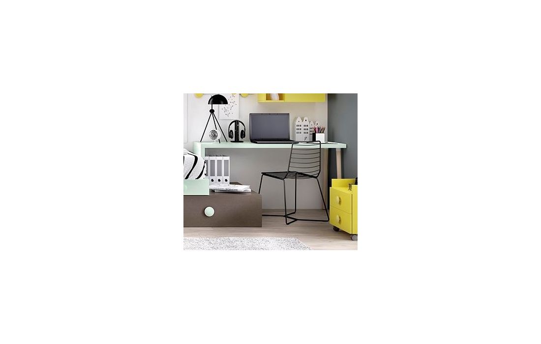Secratária, Mesa de cabeceira com rodas, Compacto de 2 camas (c/ nido) e 4 gavetas, Módulos de parede