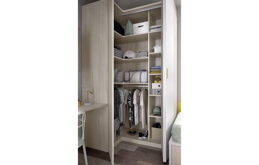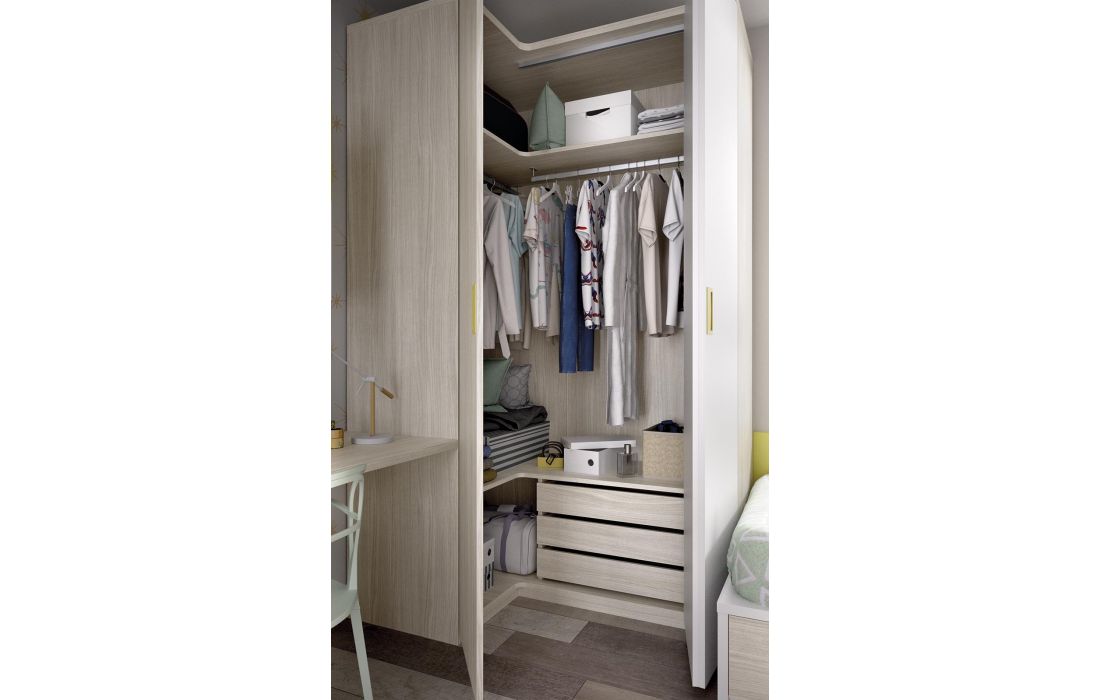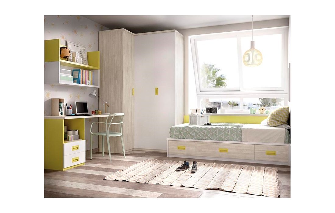 Roupeiro, Secratária, Compacto de cama com 3 gavetas, Módulos de parede
