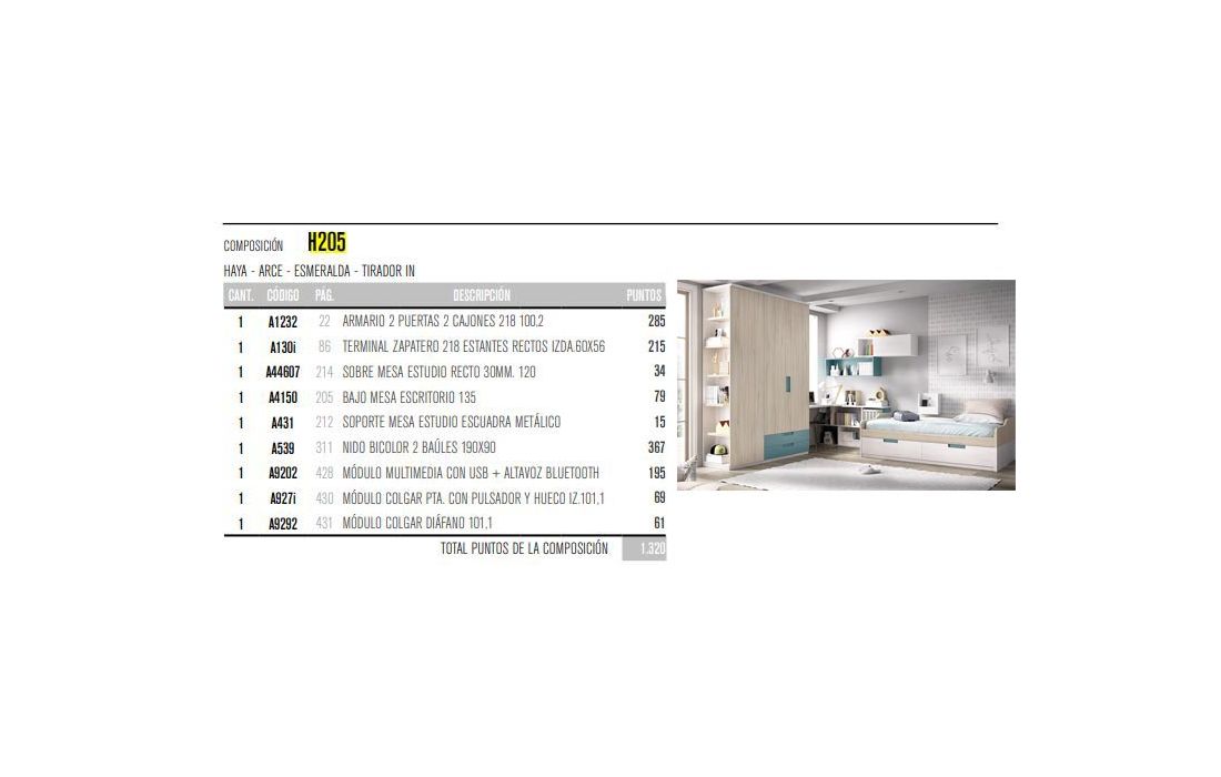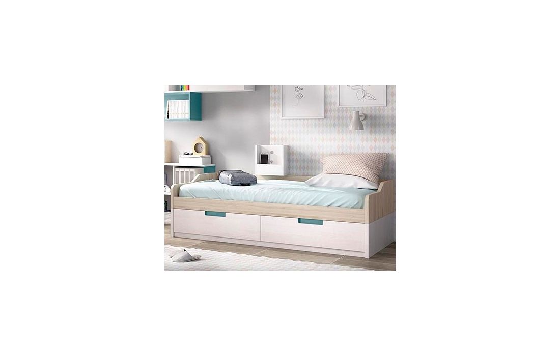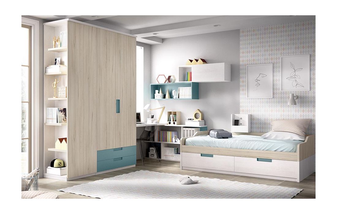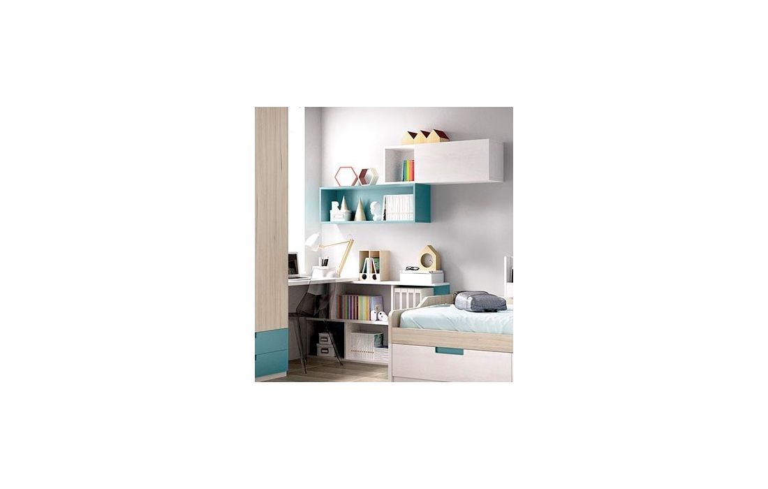 Roupeiro com estante, Secratária, Compacto de cama com 2 gavetas, Módulos de parede