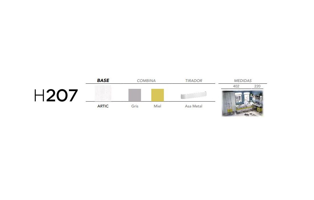 Acabamento igual à imagem: Artic, Gris, Miel e Puxador Asa Metal