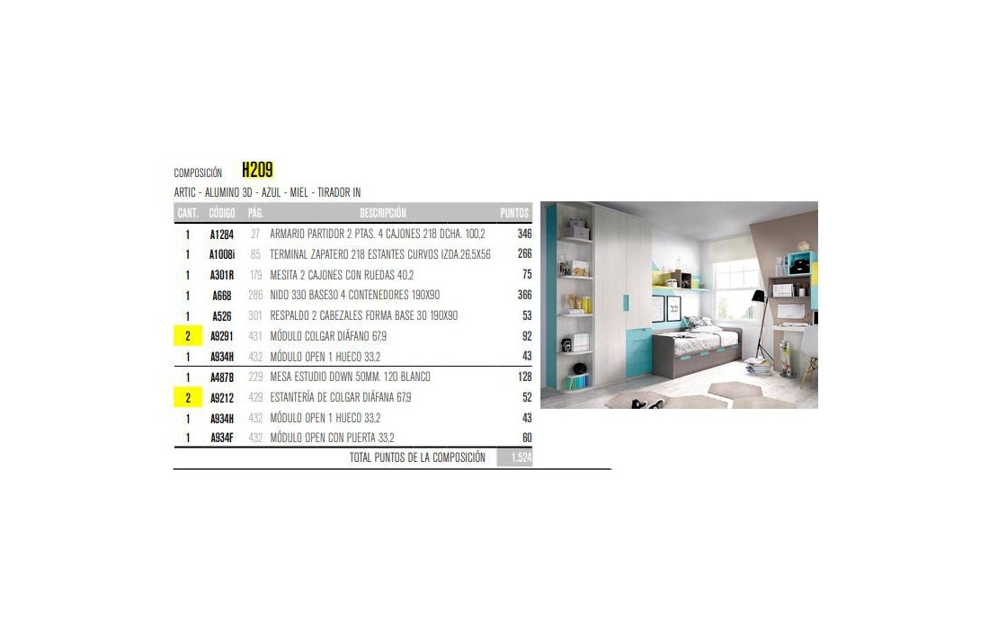 Acabamento igual à imagem: Artic, Alumino 3D, Azul, Miel e Puxador In