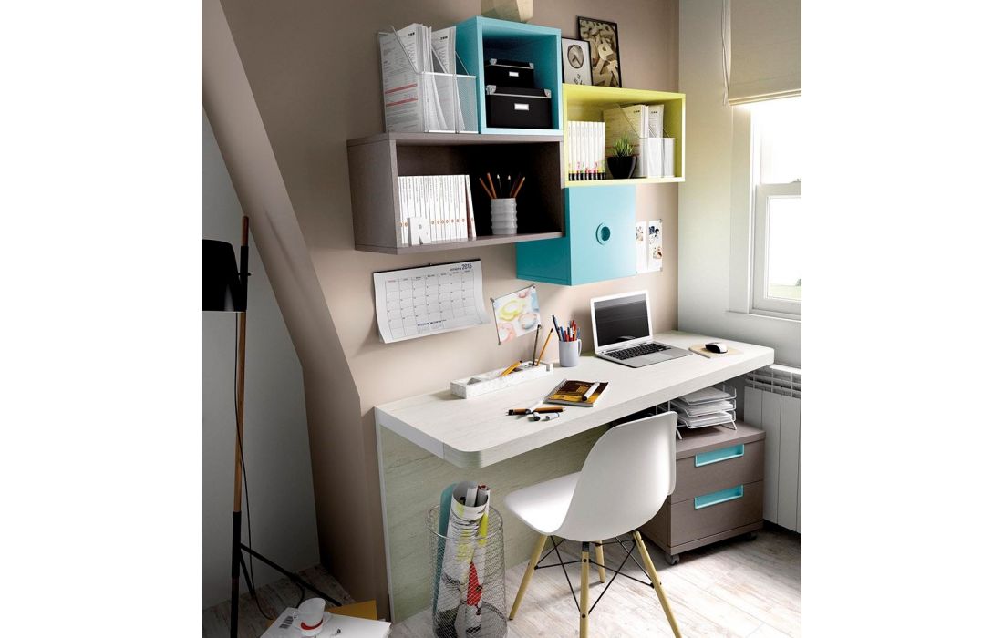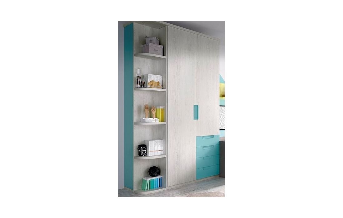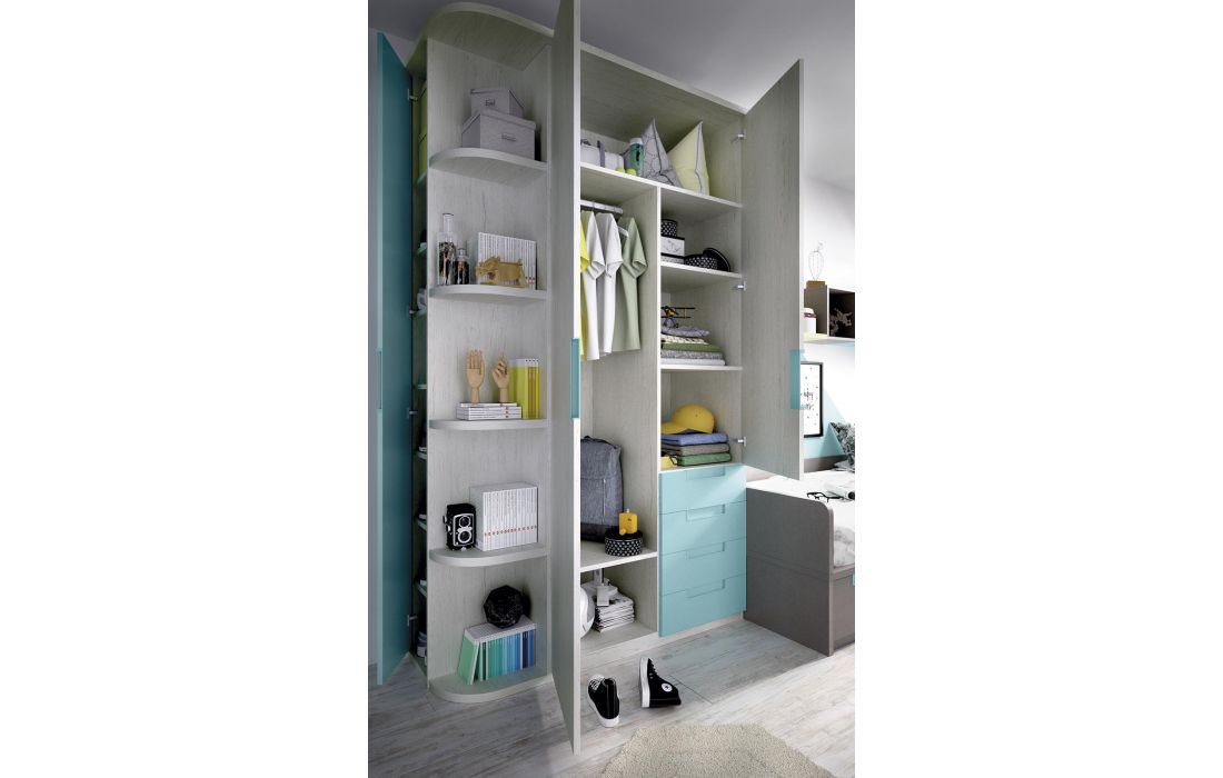 Roupeiro com estante, Secratária, Compacto de cama com 4 gavetas, Módulos de parede