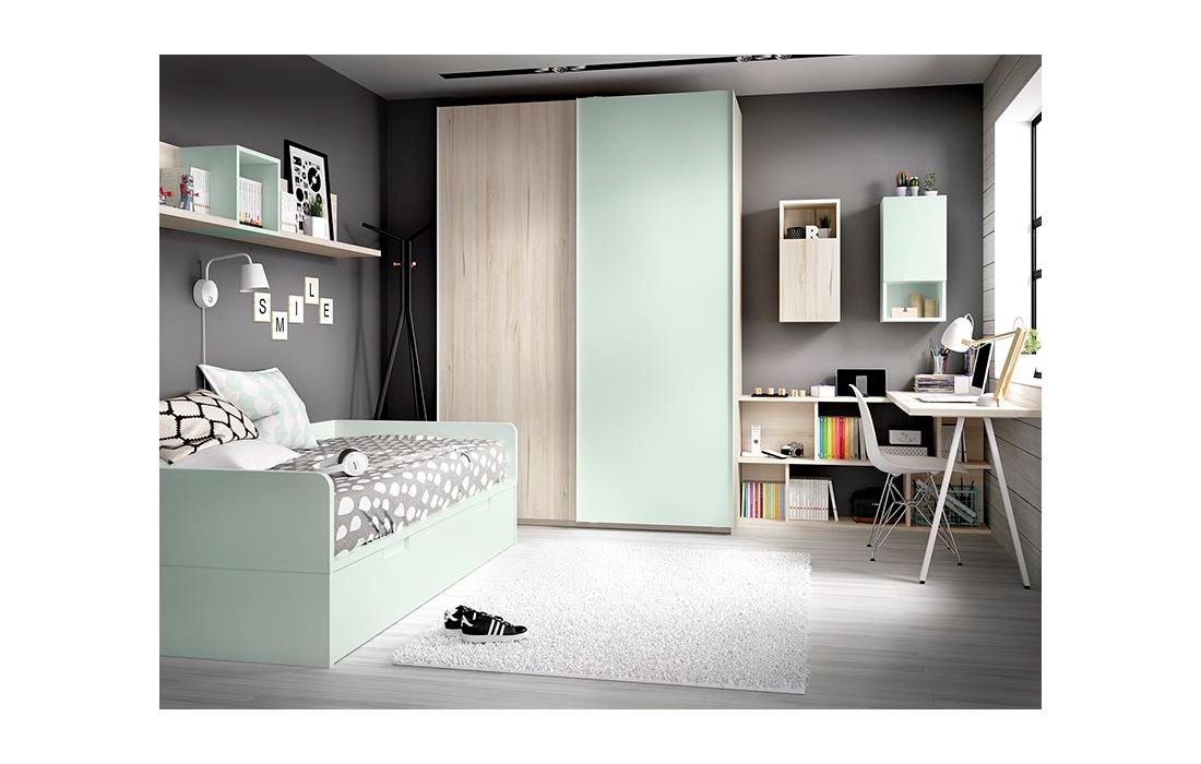 Roupeiro, Estante, Secratária, Compacto de cama com Nido, Módulos de parede