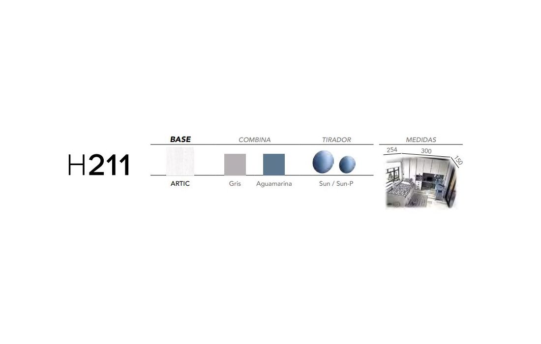 Acabamento igual à imagem: Artic, Gris, Aguamarina e Puxador Sun, Sun-P e Fan