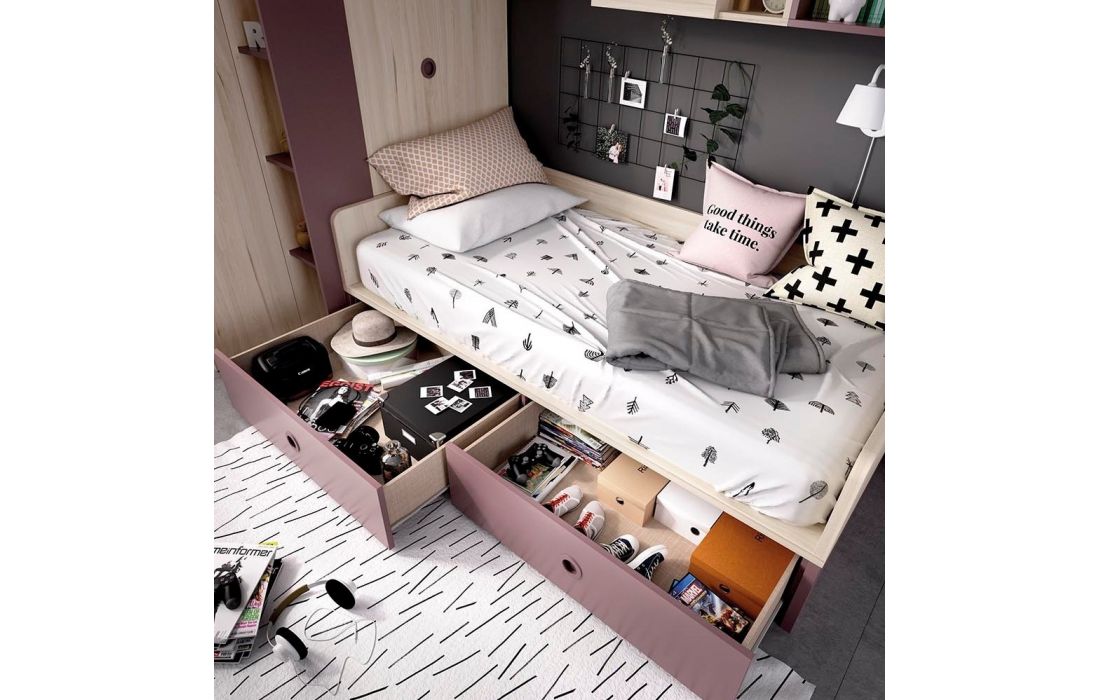 Roupeiro, Estante, Secretária, Compacto de cama com 2 gavetas, Módulos de parede