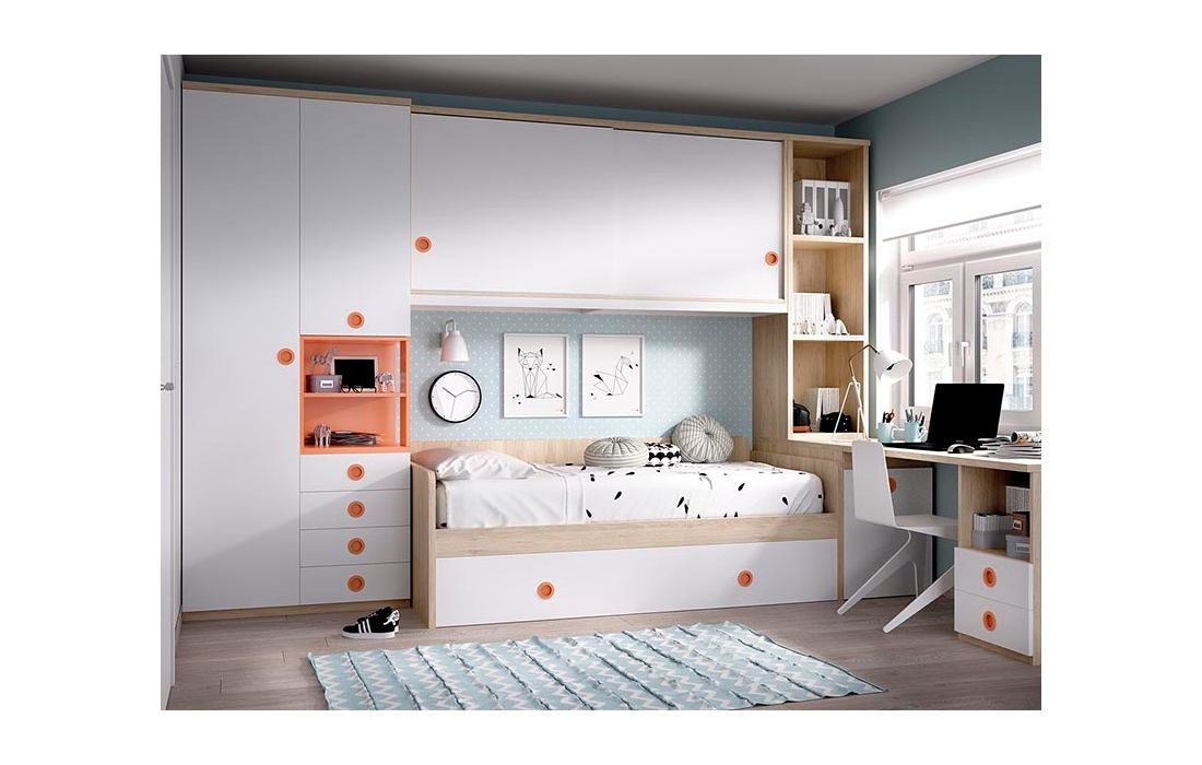 Roupeiro, Estante, Secretária, Compacto de cama com Nido, Módulos de parede