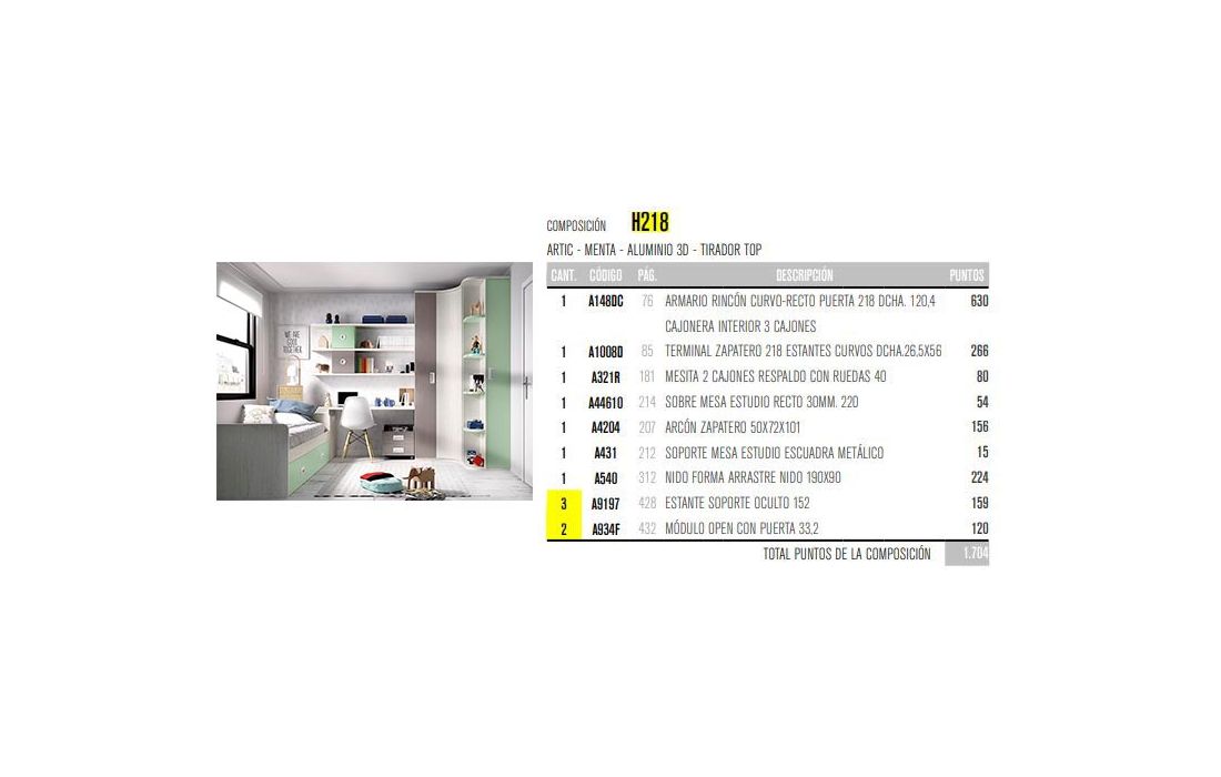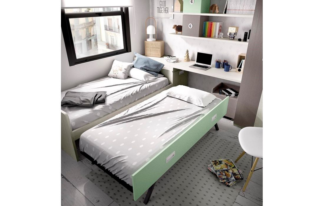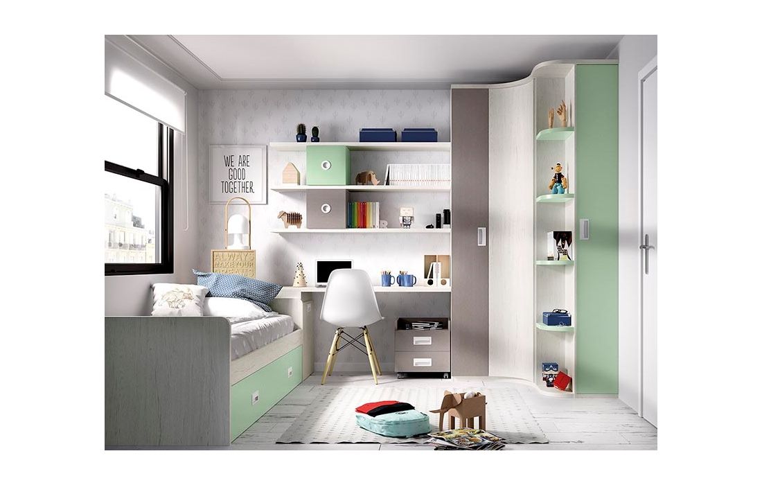 Roupeiro, Estante, Secretária, Mesa de cabeceira c/ rodas, Compacto de cama c/ Nido, Módulos de parede