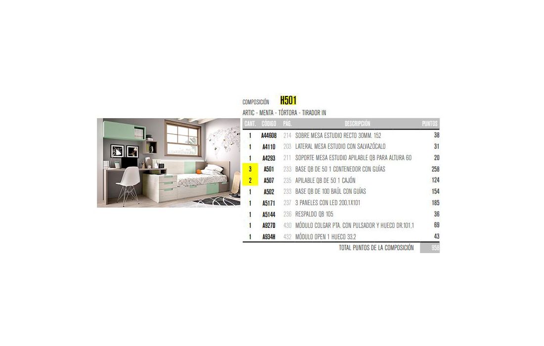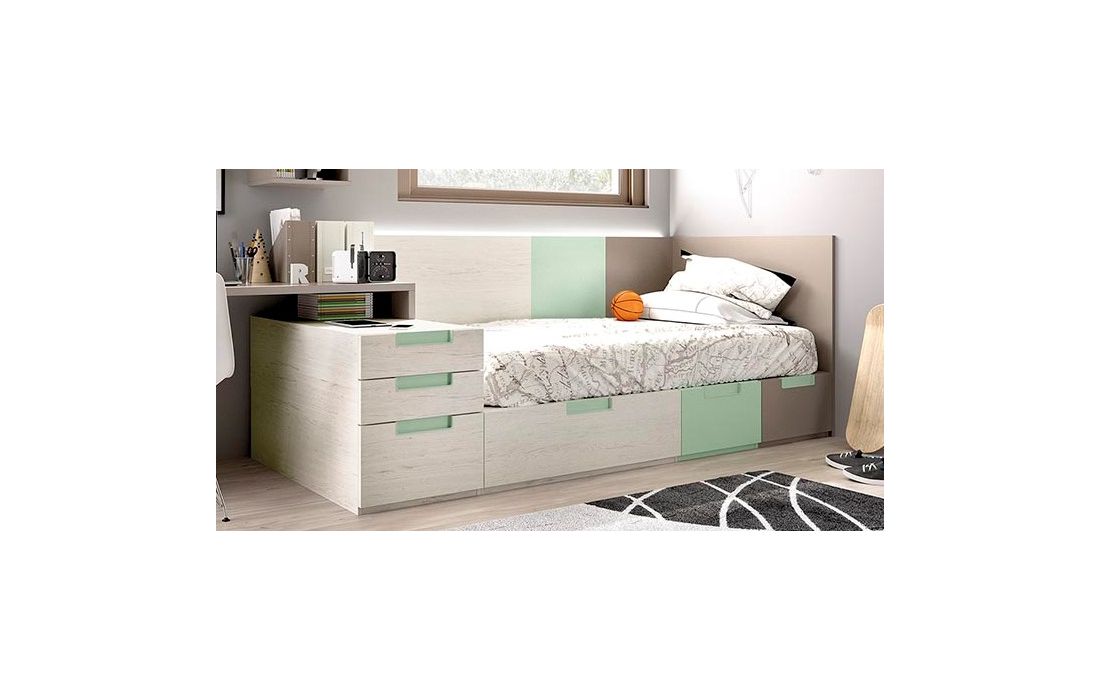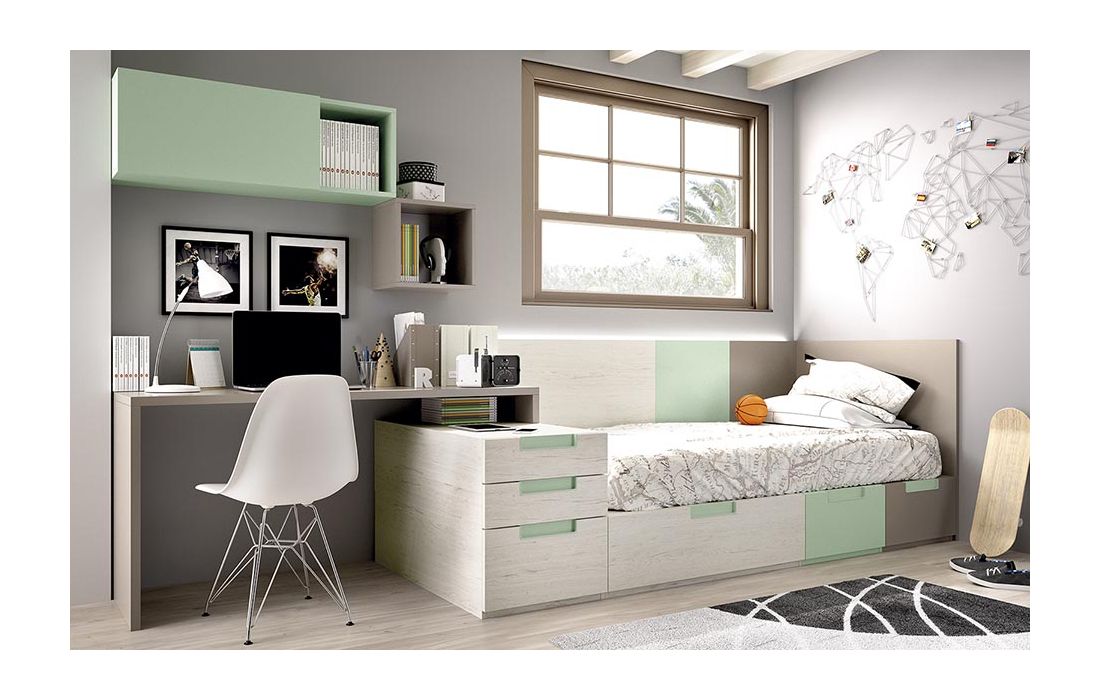 Secretária, Compacto de cama com 3 gavetas, Módulos de parede