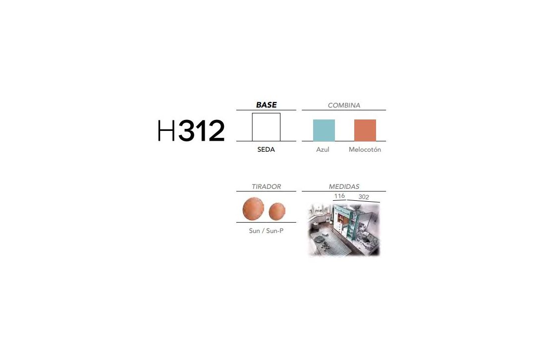 Acabamento igual à imagem: Seda, Azul, Melocotón e Puxador Sun / Sun-P