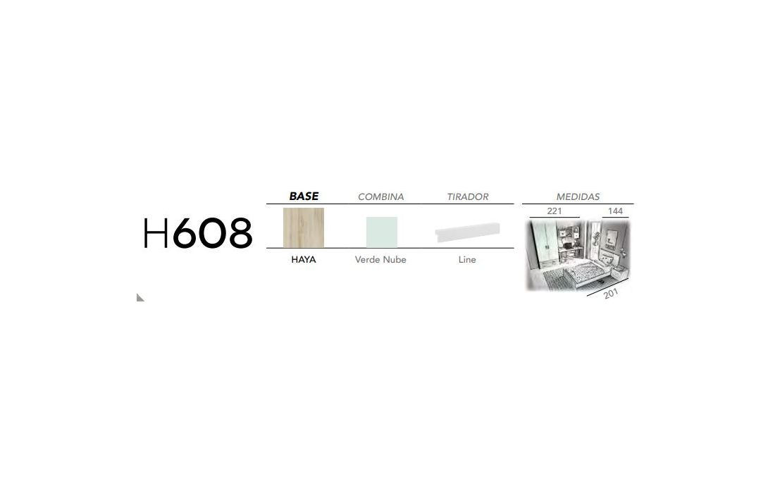 Acabamento igual à imagem: Beech, Verde Nube e Puxador Line